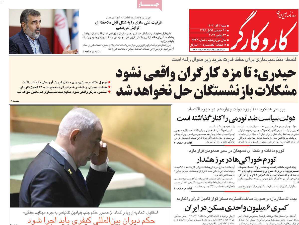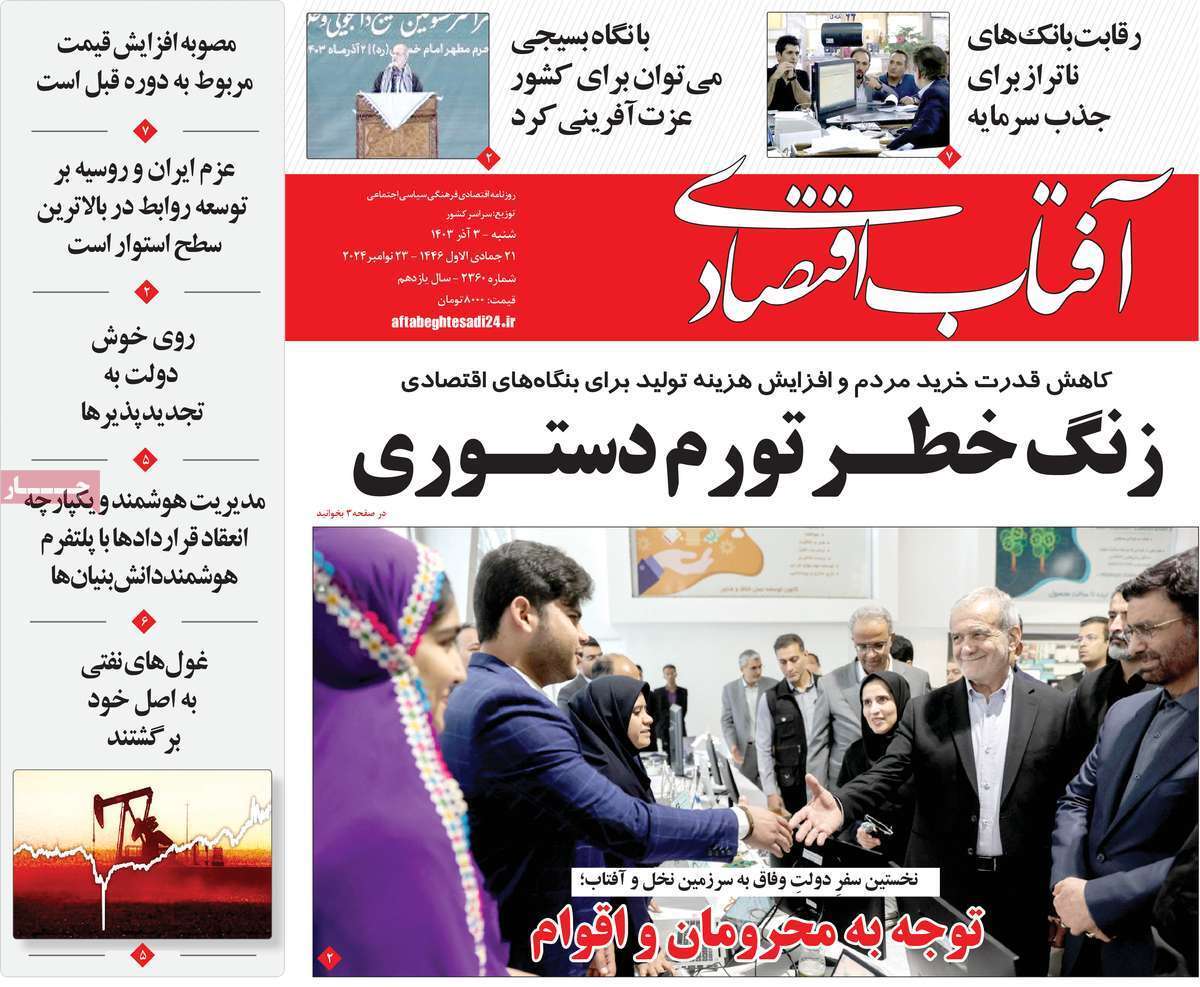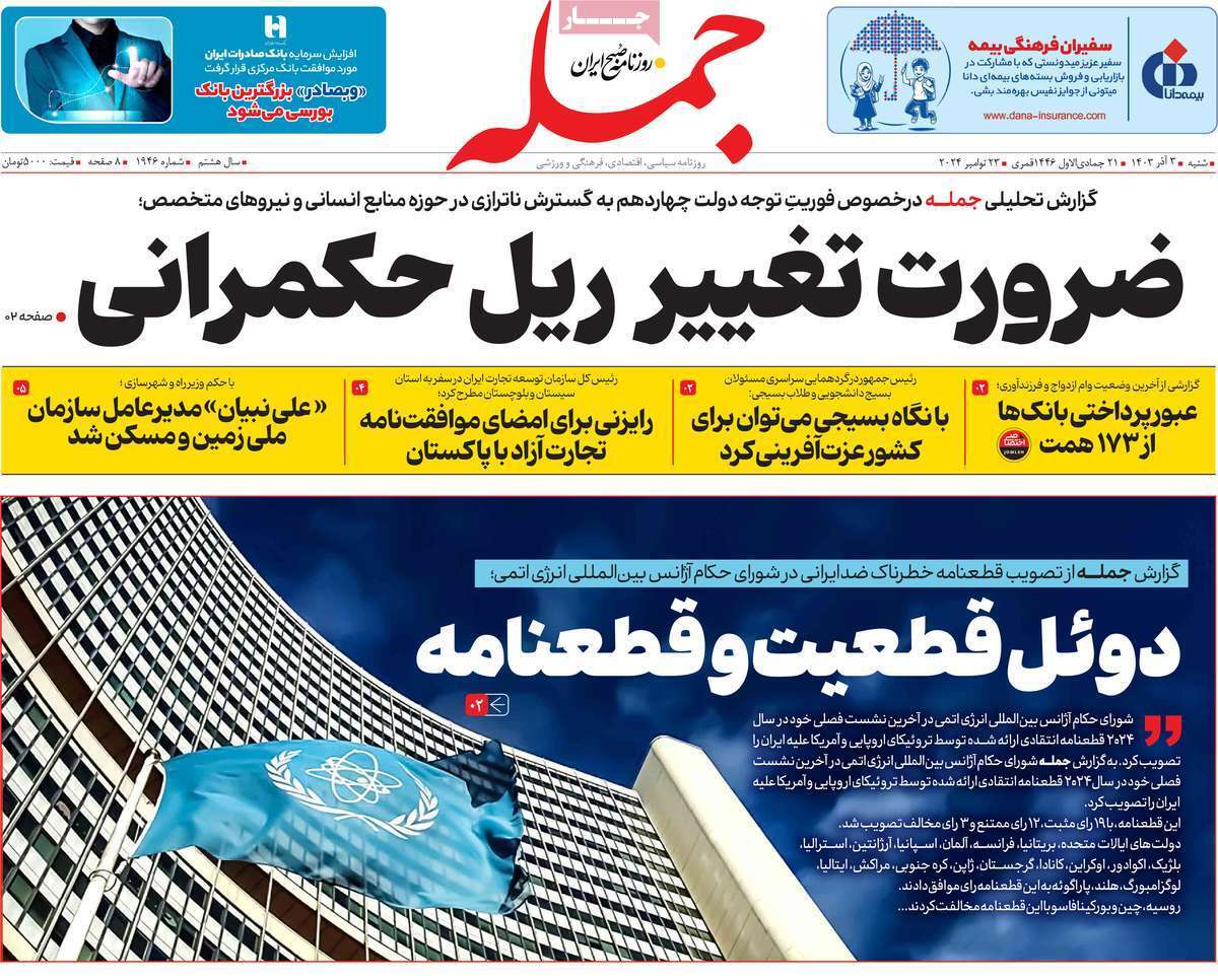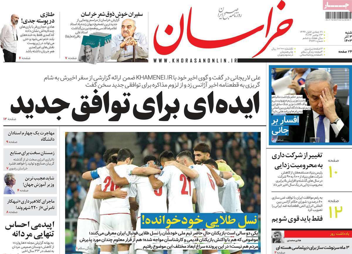 صفحه نخست روزنامههای شنبه ۳ آذر ۱۴۰۳