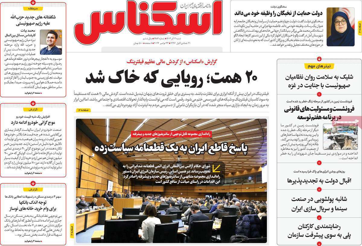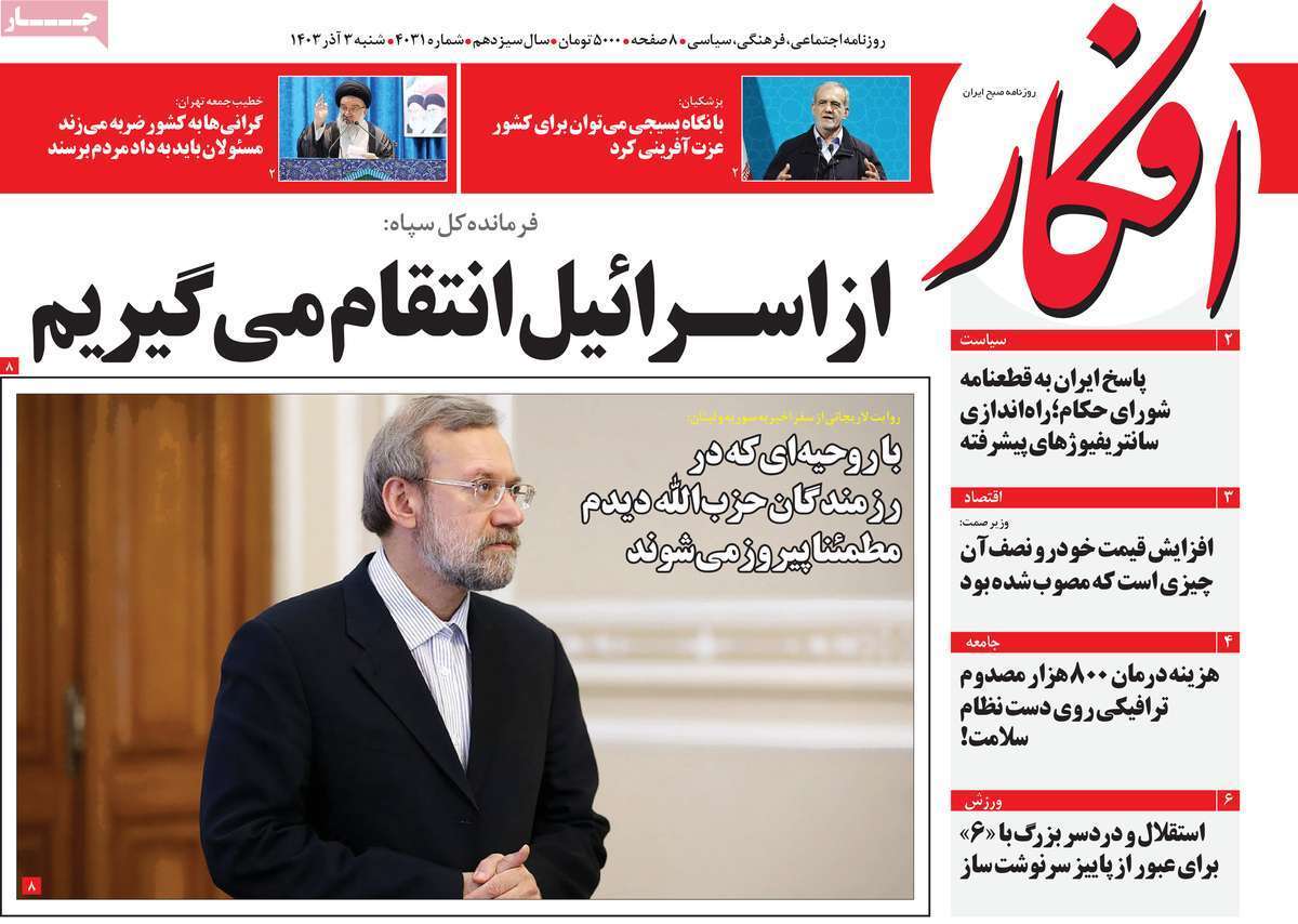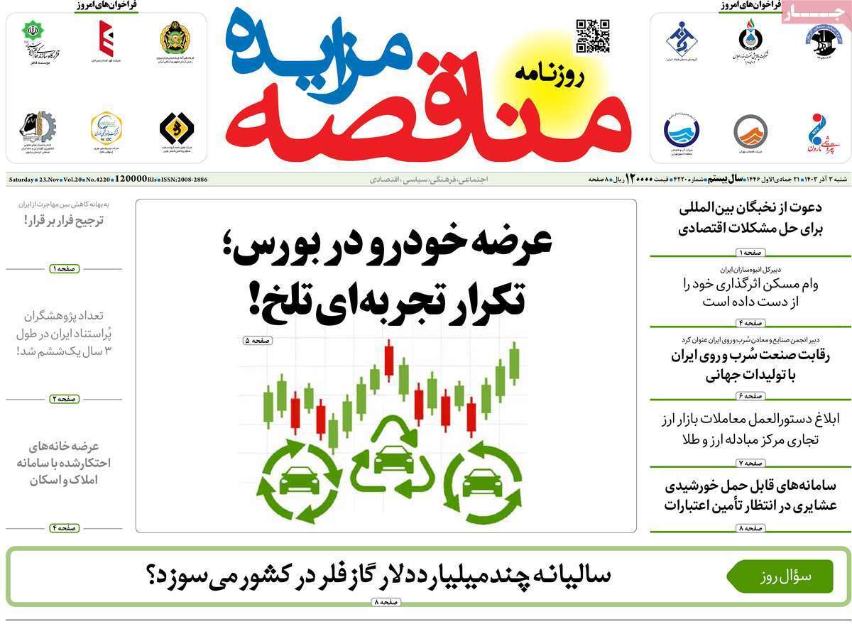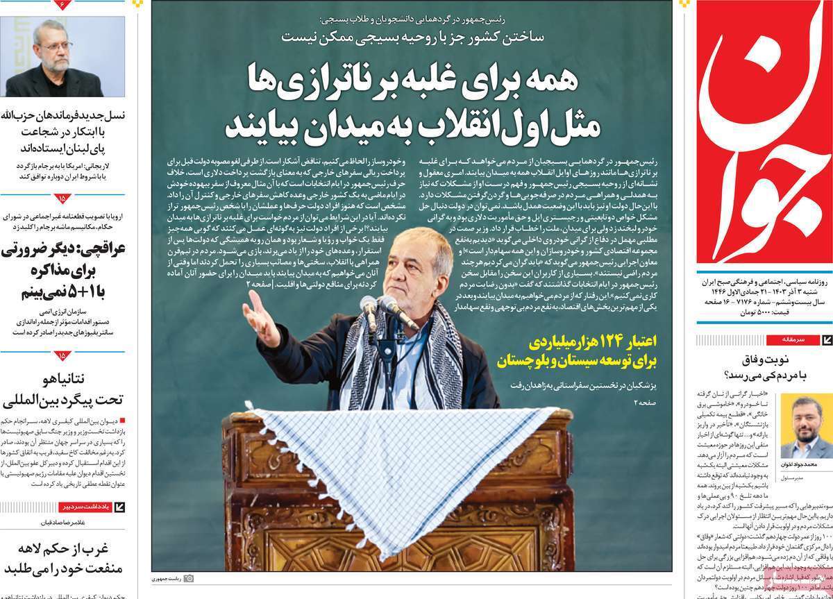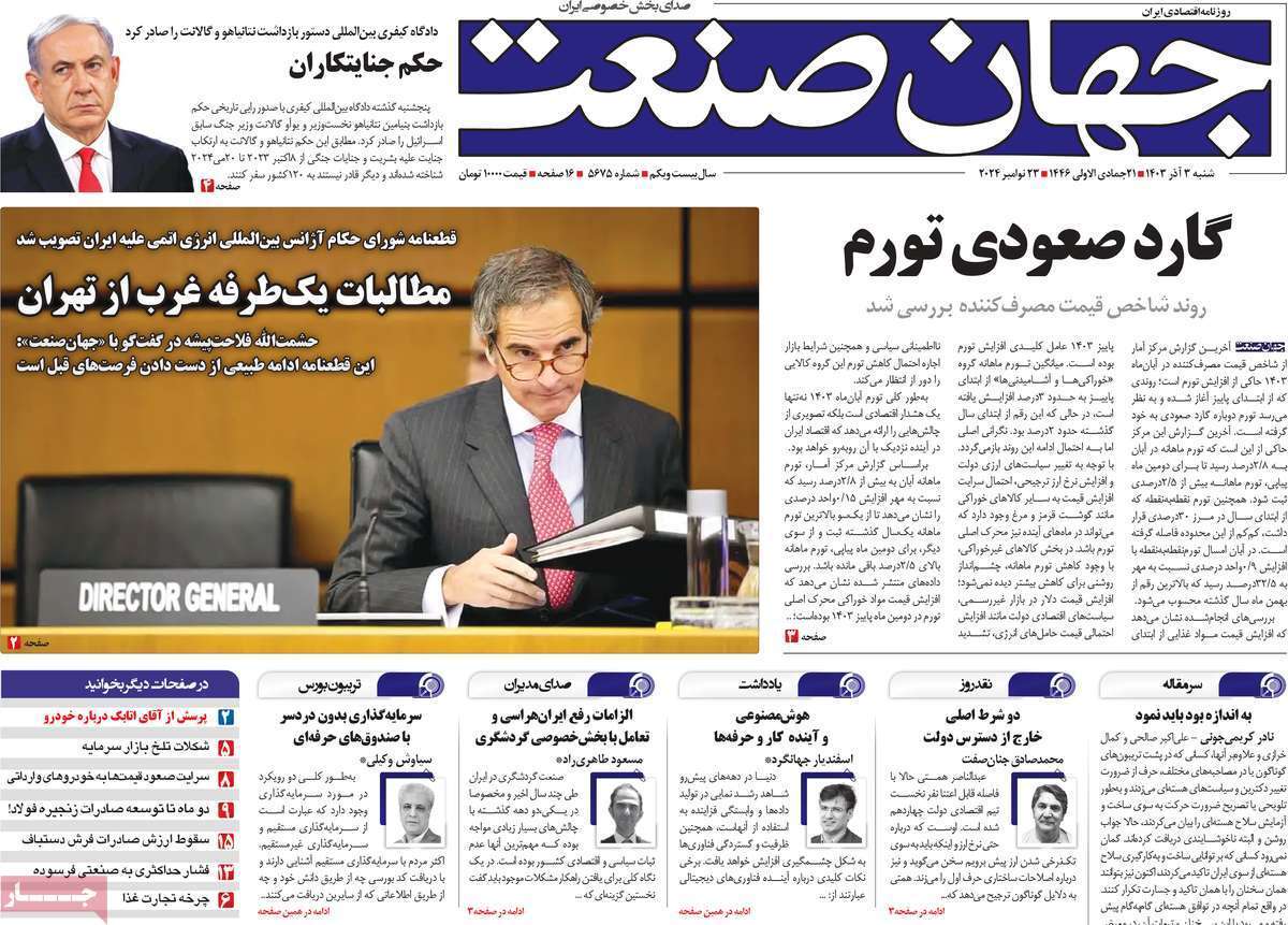 صفحه نخست روزنامههای شنبه ۳ آذر ۱۴۰۳