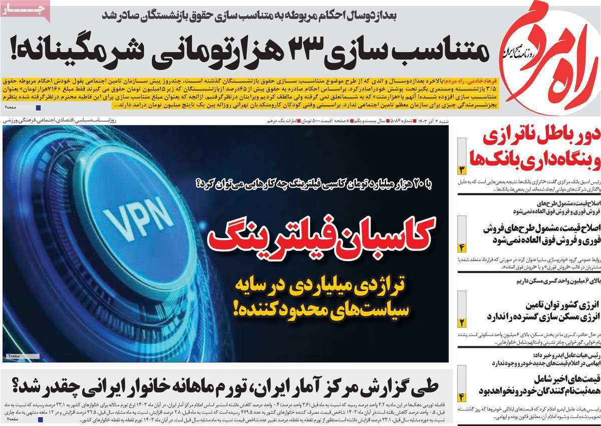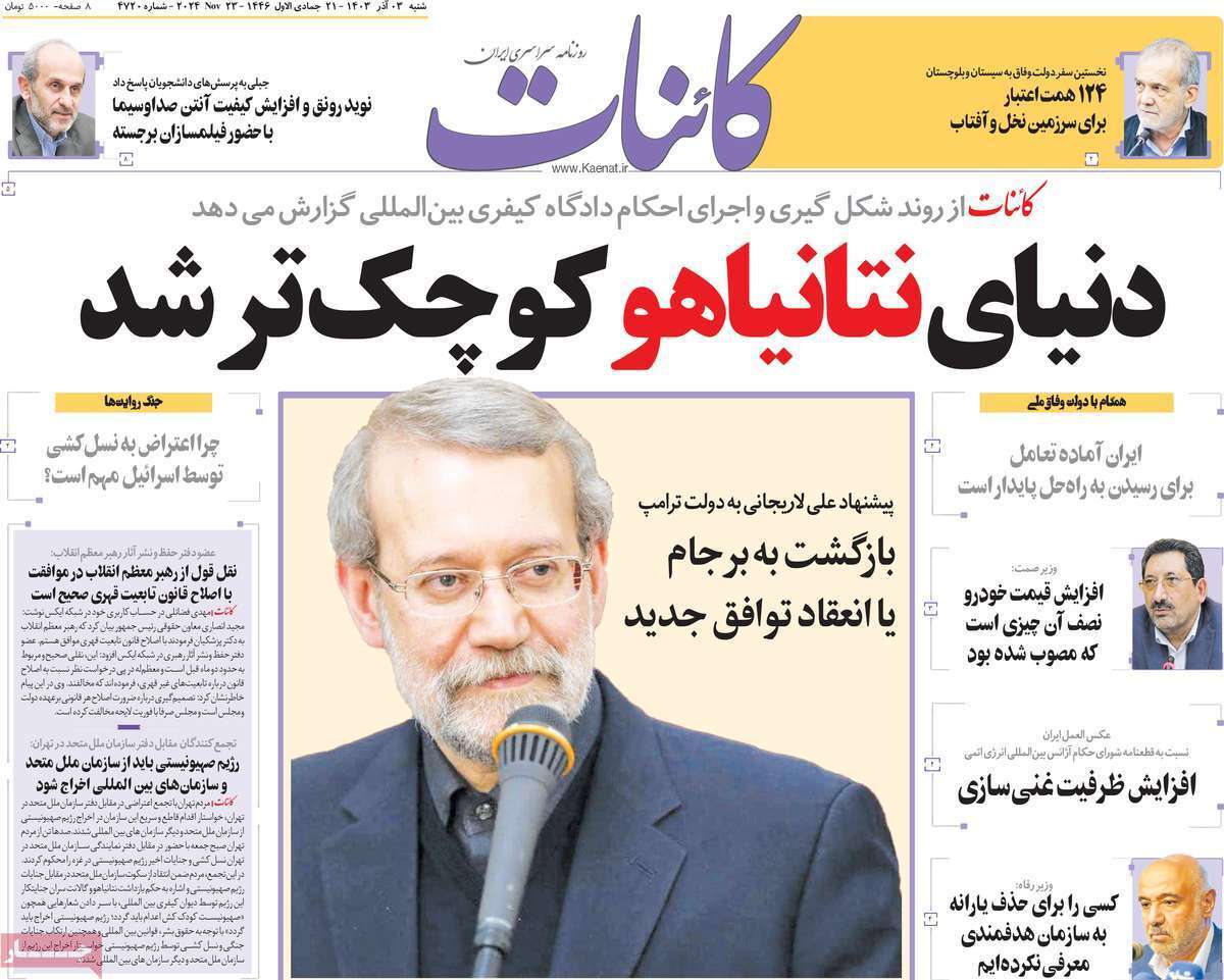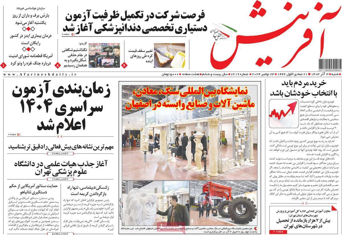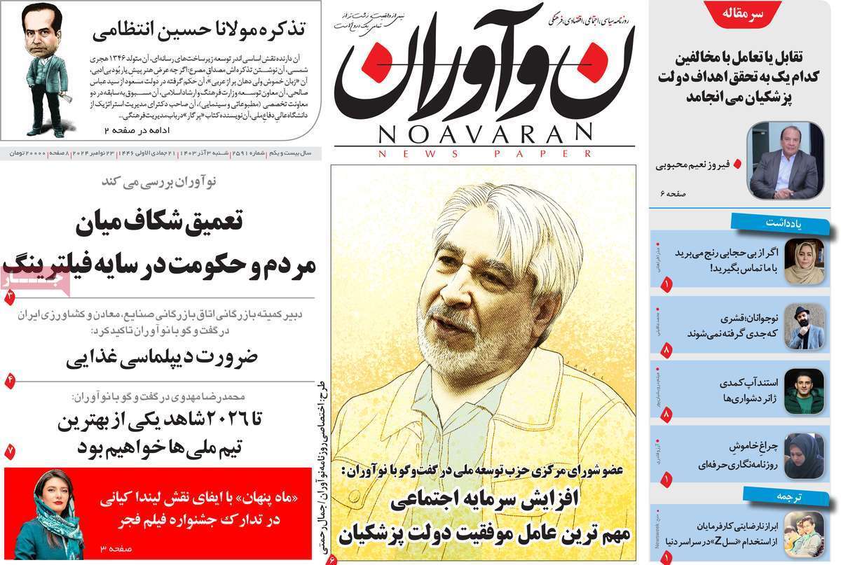 صفحه نخست روزنامههای شنبه ۳ آذر ۱۴۰۳