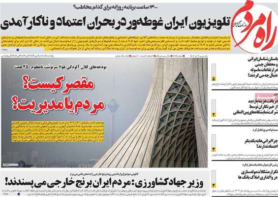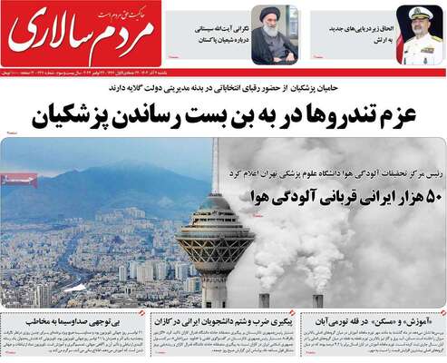 صفحه نخست روزنامههای یکشنبه ۴ آذر ۱۴۰۳ را که به افزایش قیمتها، قربانیان آلودگی هوا، توهم تخفیف و مهمترین رویدادهای ورزشی پرداختهاند؛ در ادامه مشاهده میکنید.