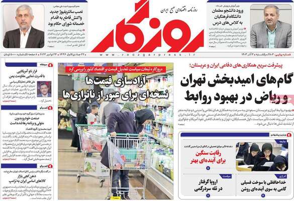 صفحه نخست روزنامههای یکشنبه ۴ آذر ۱۴۰۳
