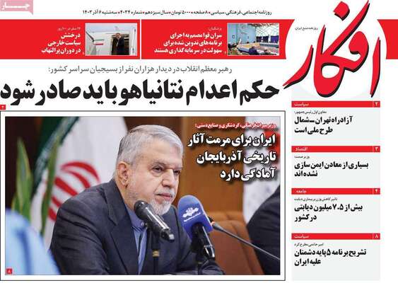 صفحه نخست روزنامههای سهشنبه ۶ آذر ۱۴۰۳