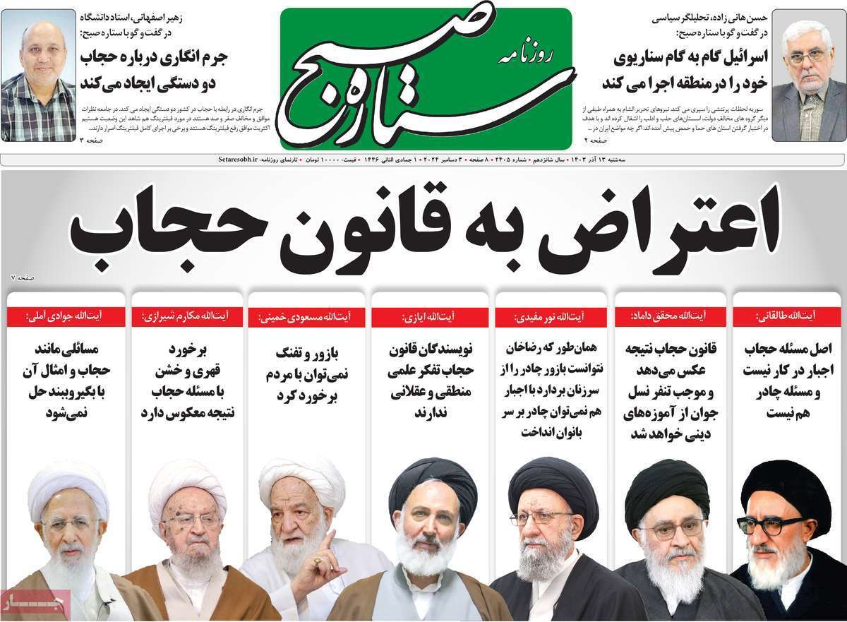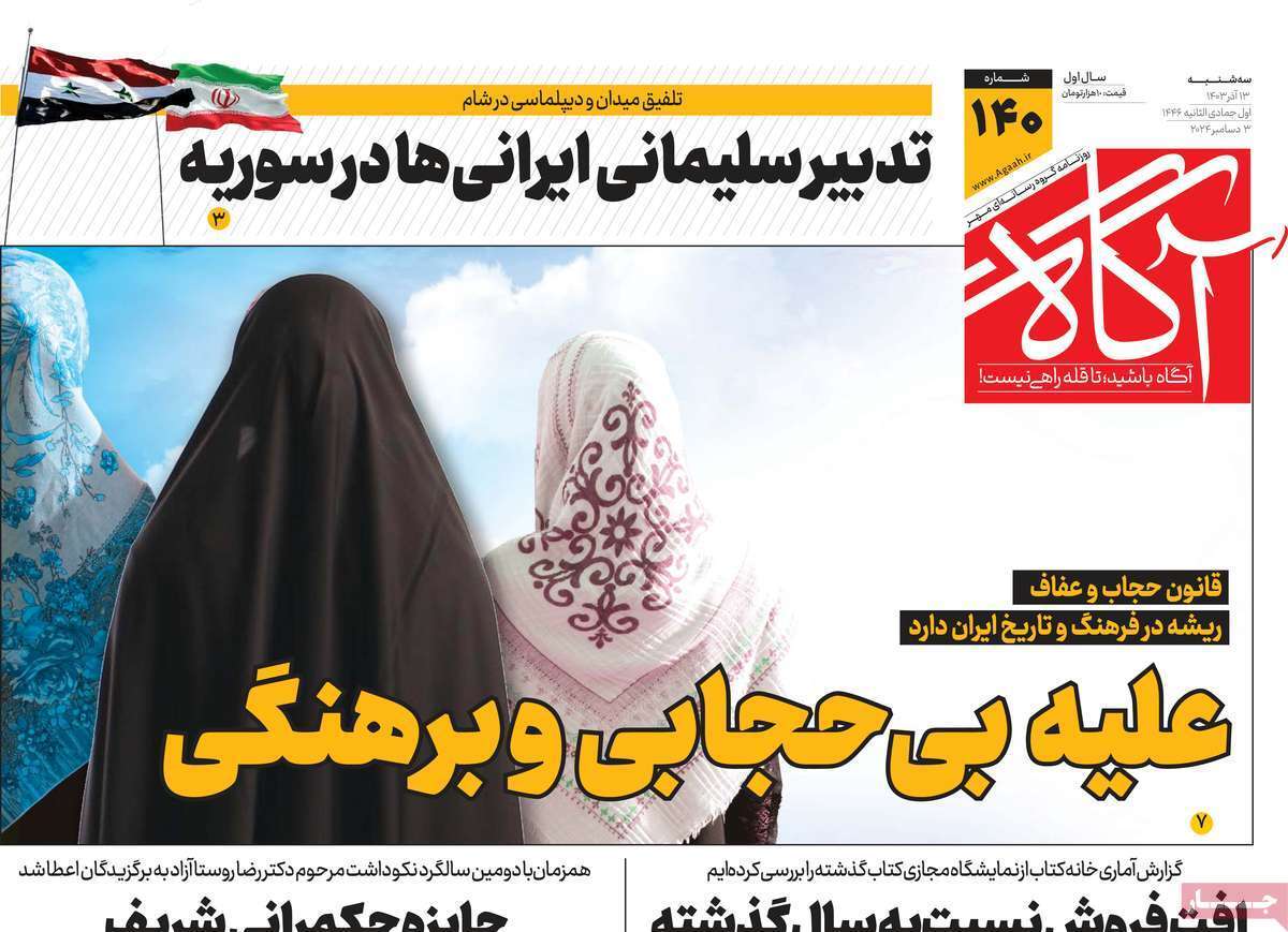 صفحه نخست روزنامه‌های سه‌شنبه ۱۳ آذر ۱۴۰۳ را که به اعتراض به قانون حجاب، بدون روتوش با مردم و مهمترین رویدادهای ورزشی پرداخته‌اند؛ در ادامه مشاهده می‌کنید.
