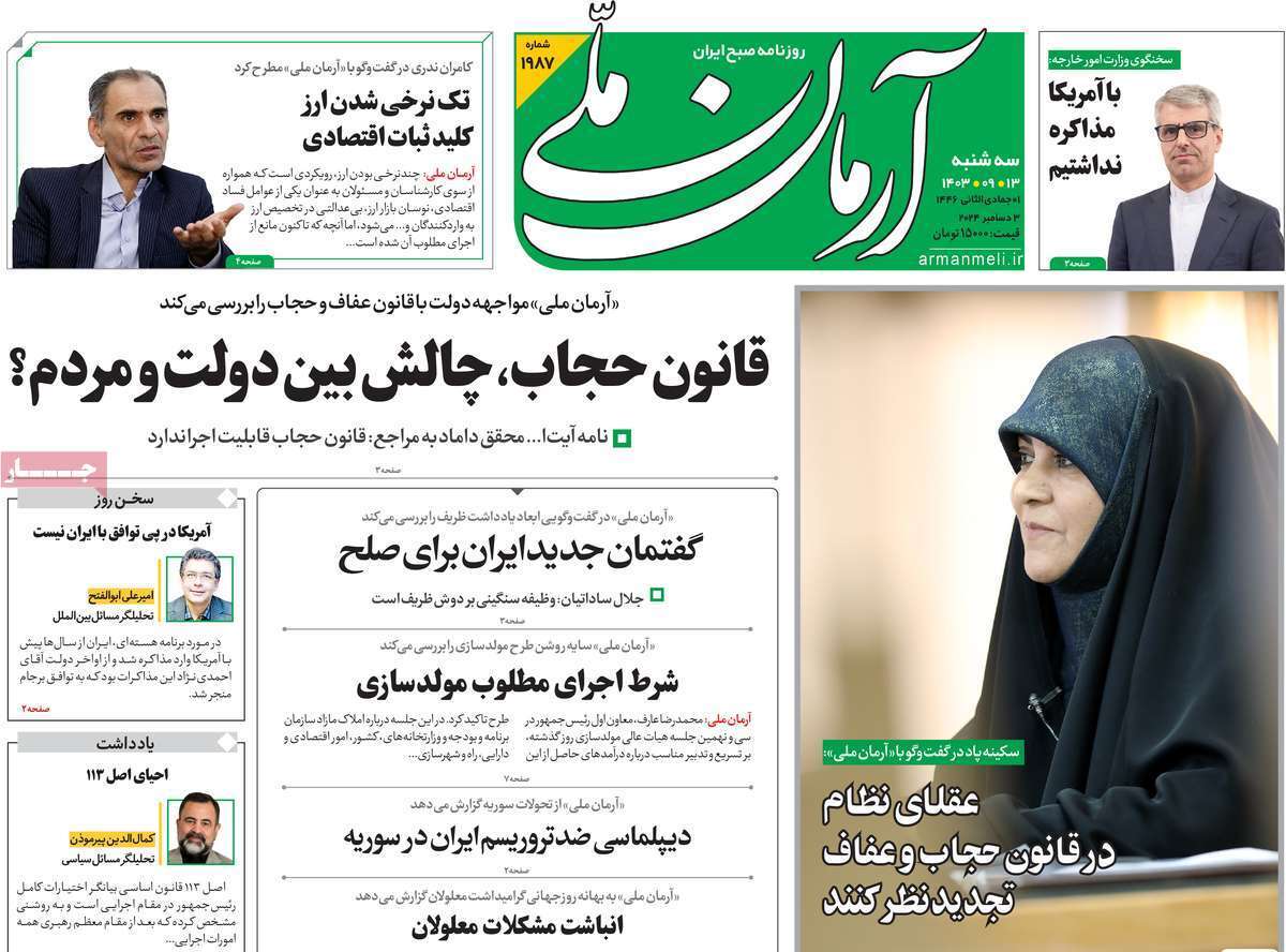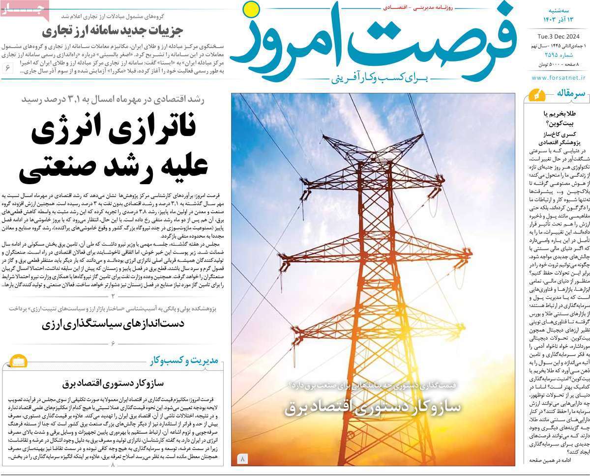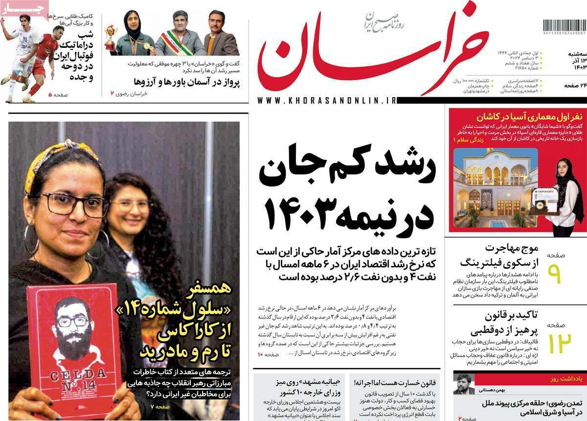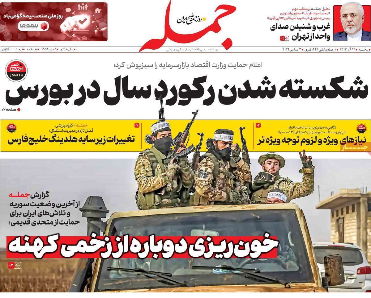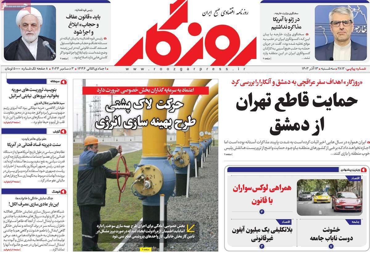 صفحه نخست روزنامه‌های سه‌شنبه ۱۳ آذر ۱۴۰۳