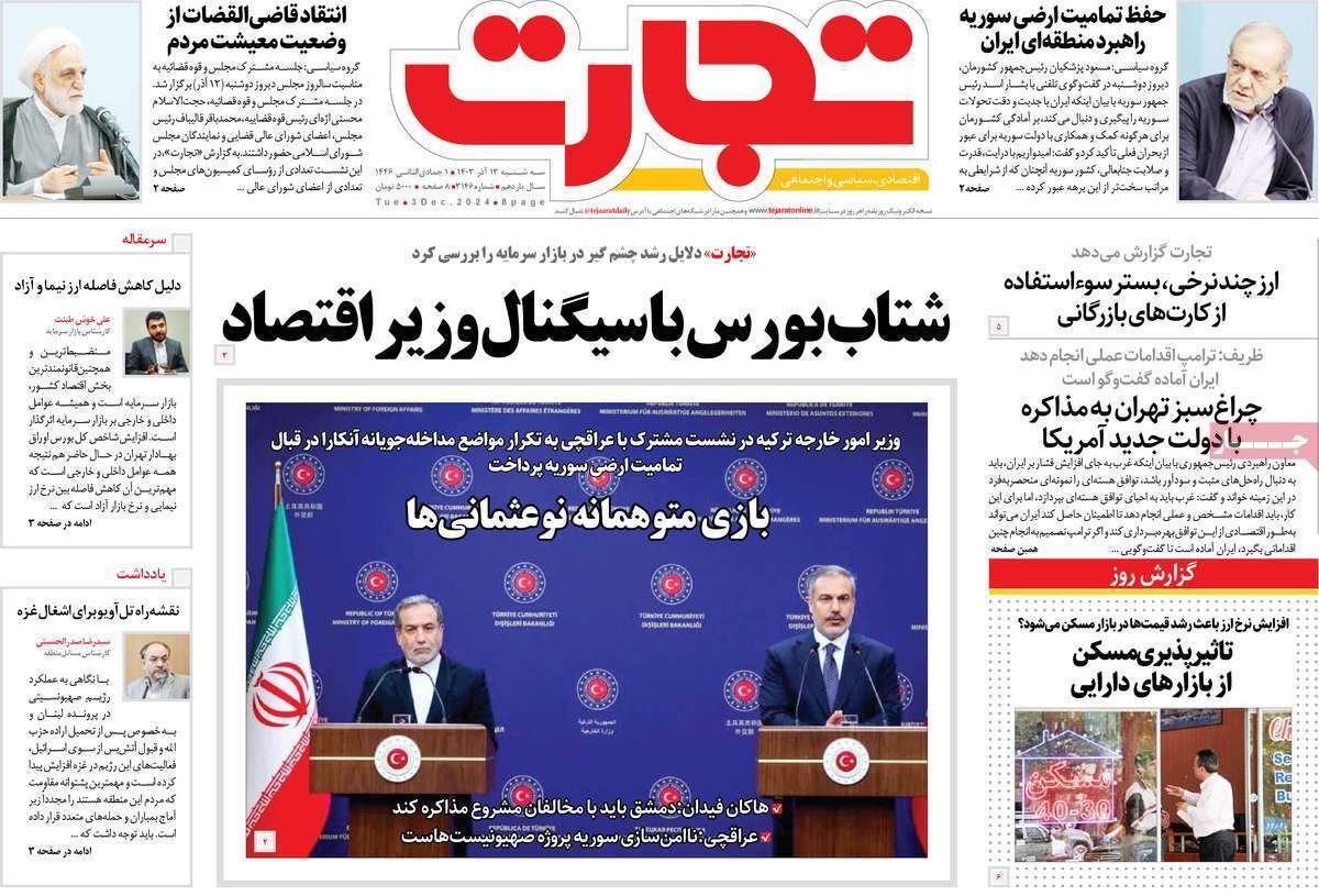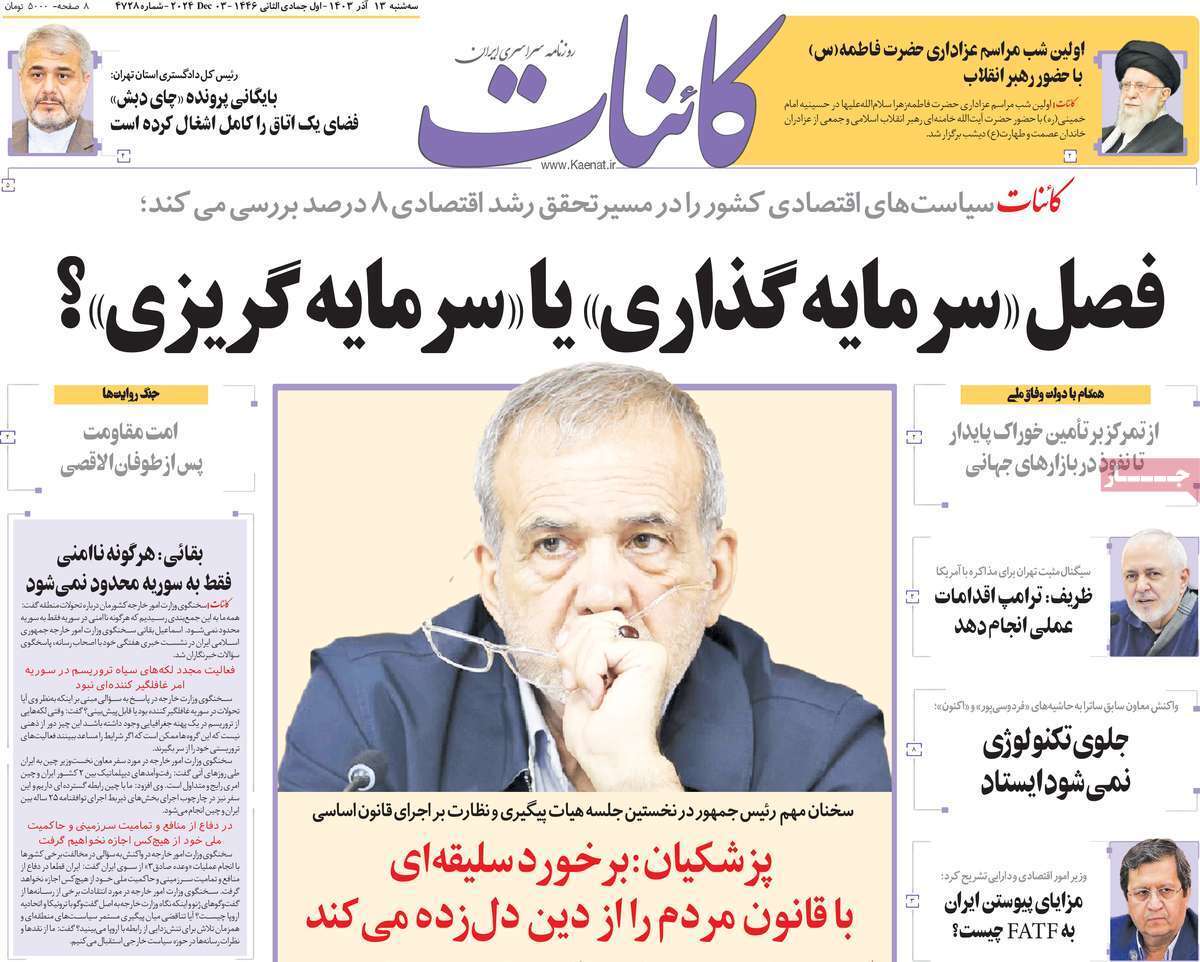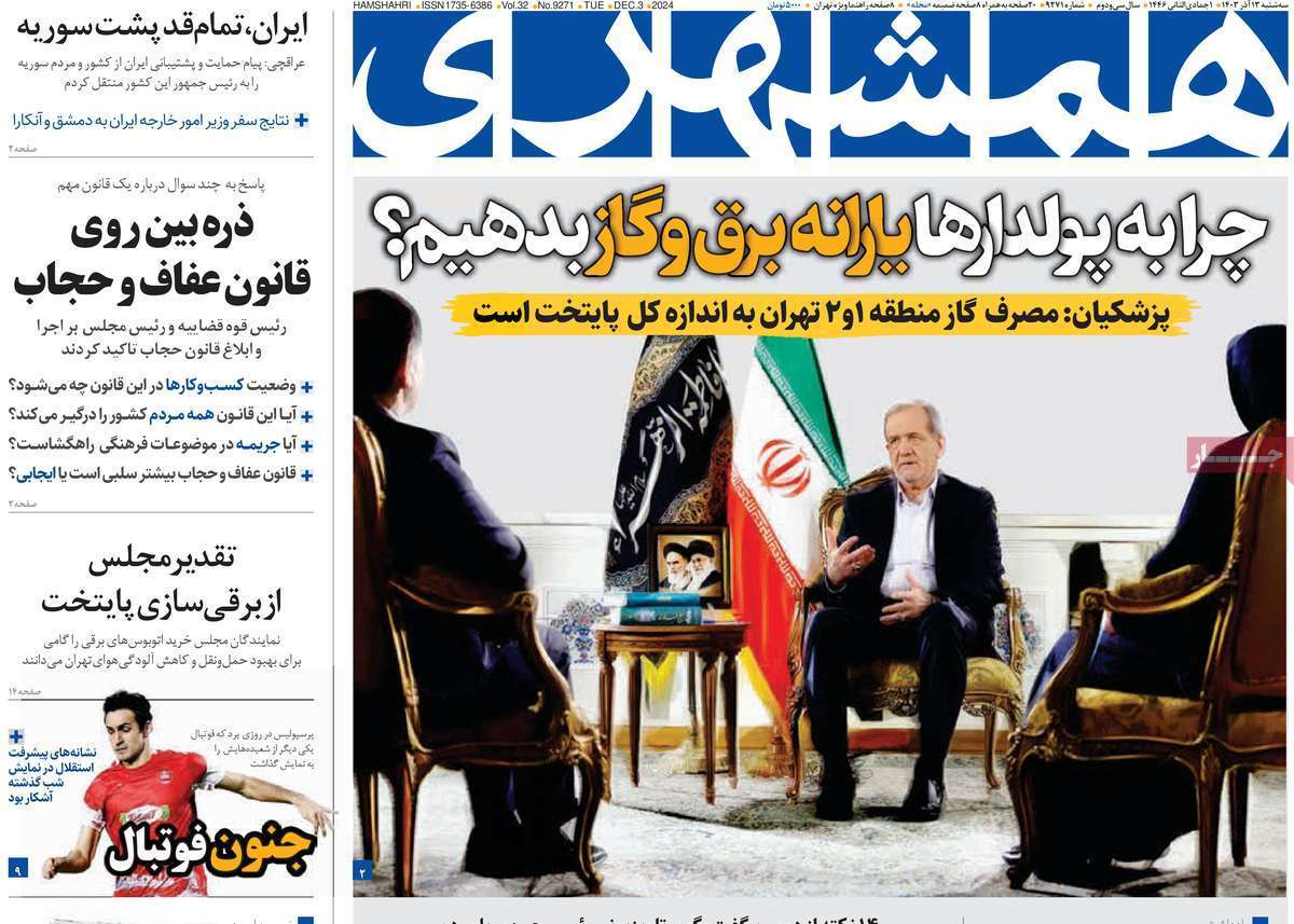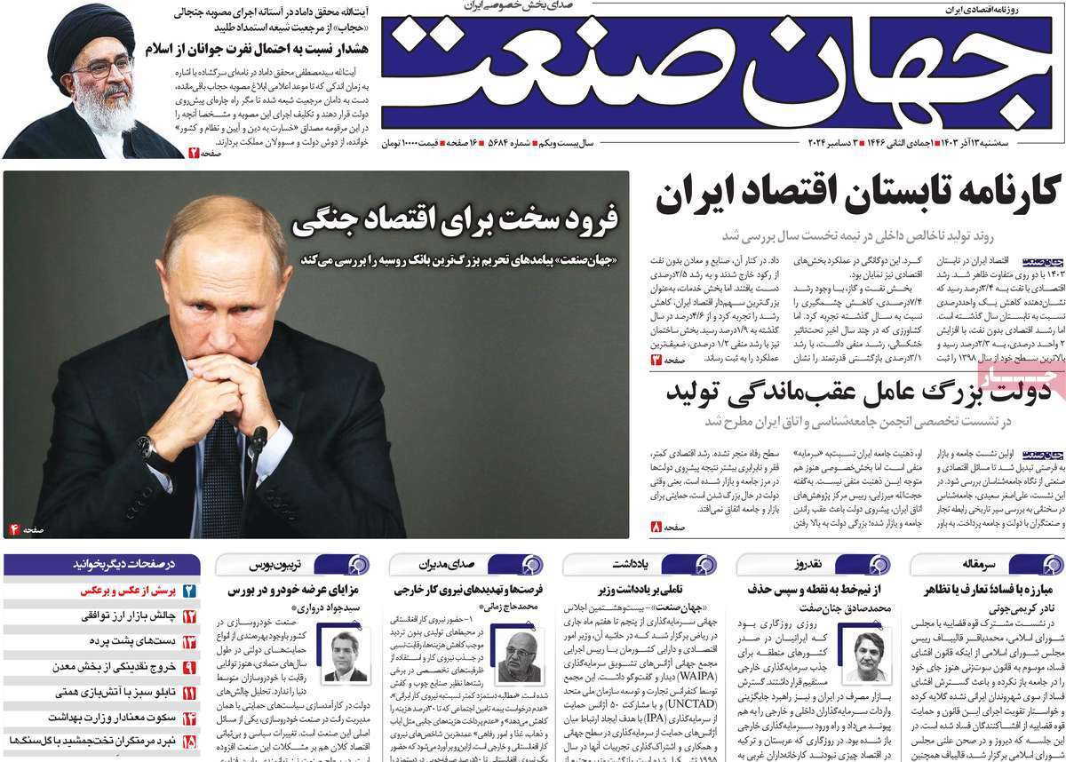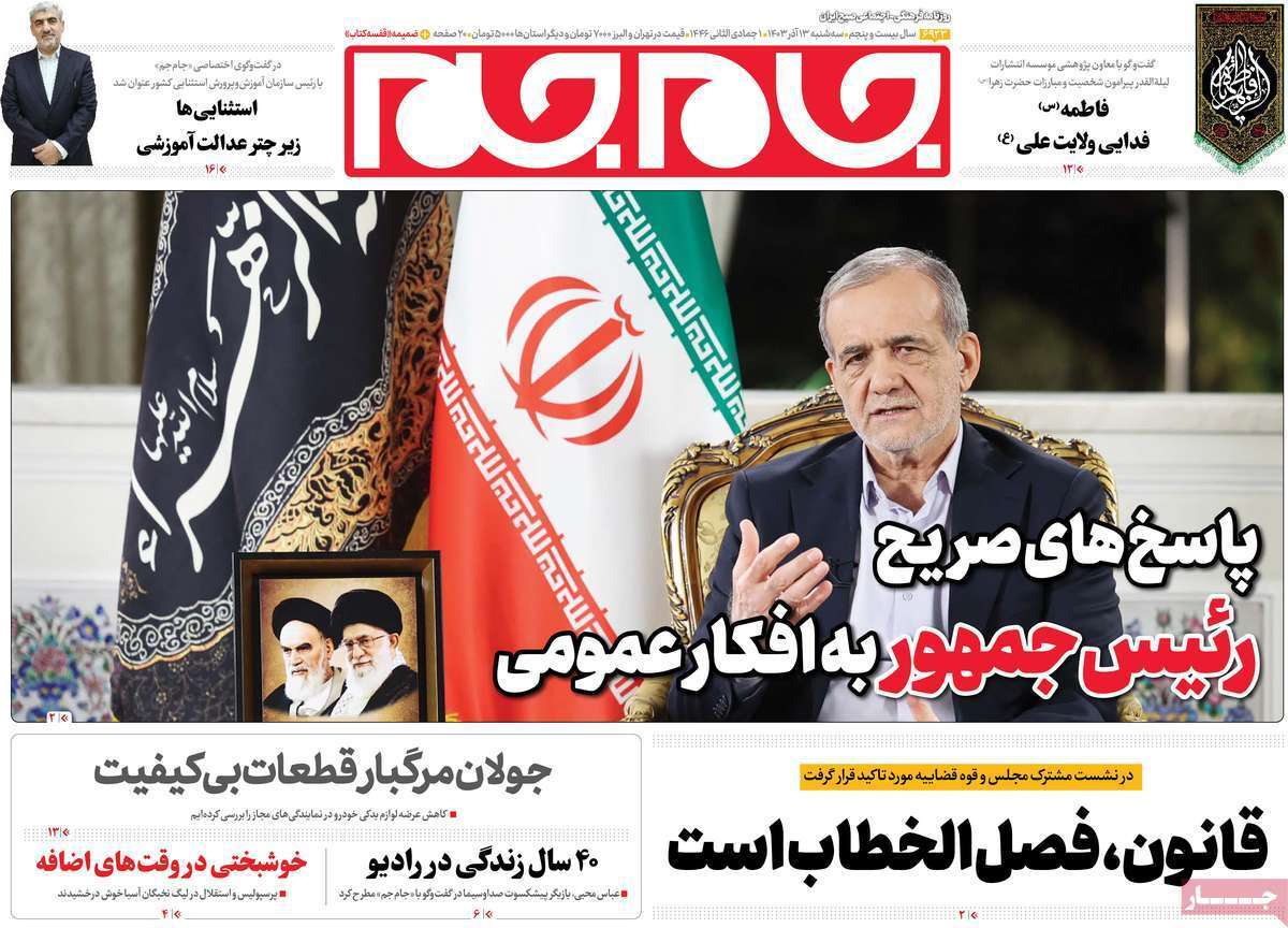 صفحه نخست روزنامه‌های سه‌شنبه ۱۳ آذر ۱۴۰۳