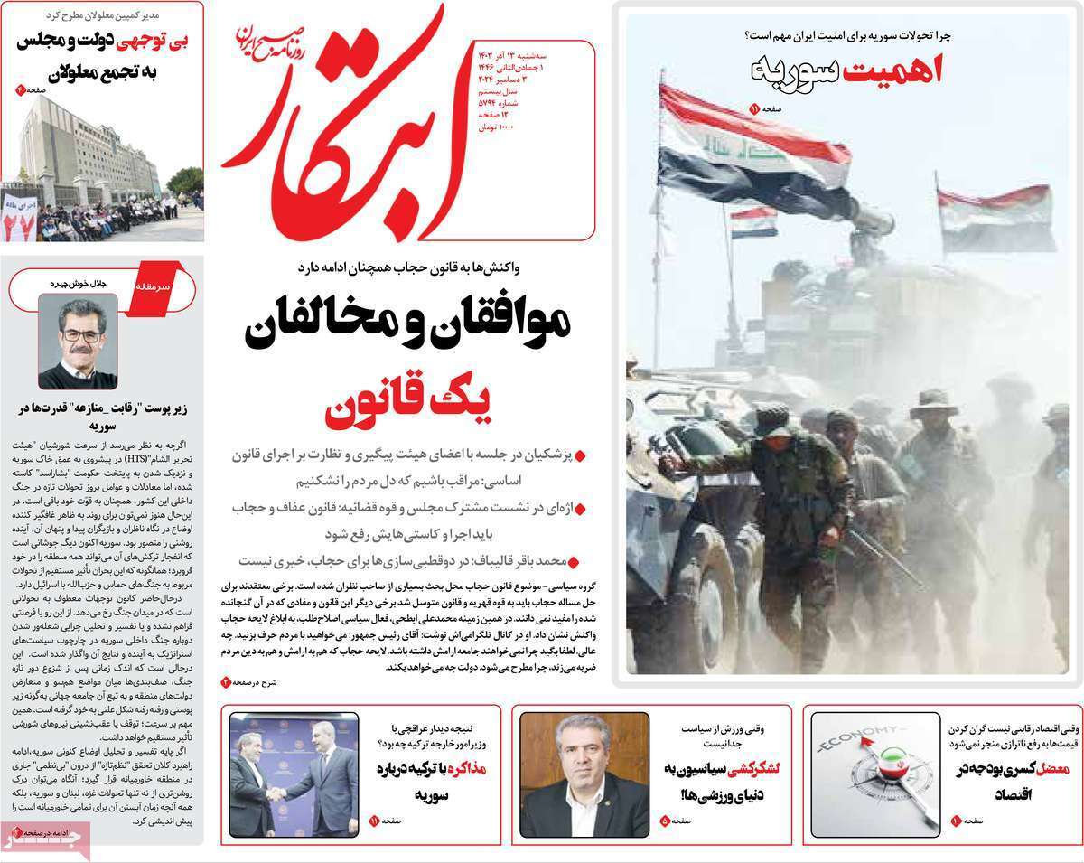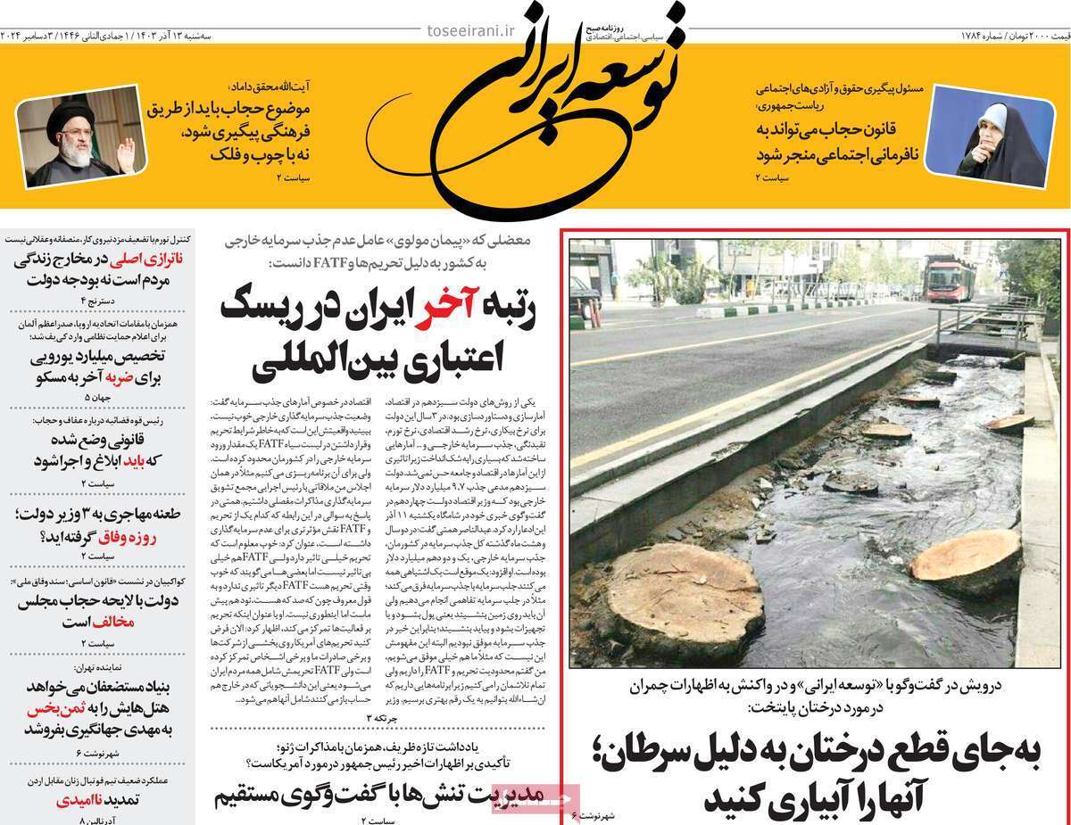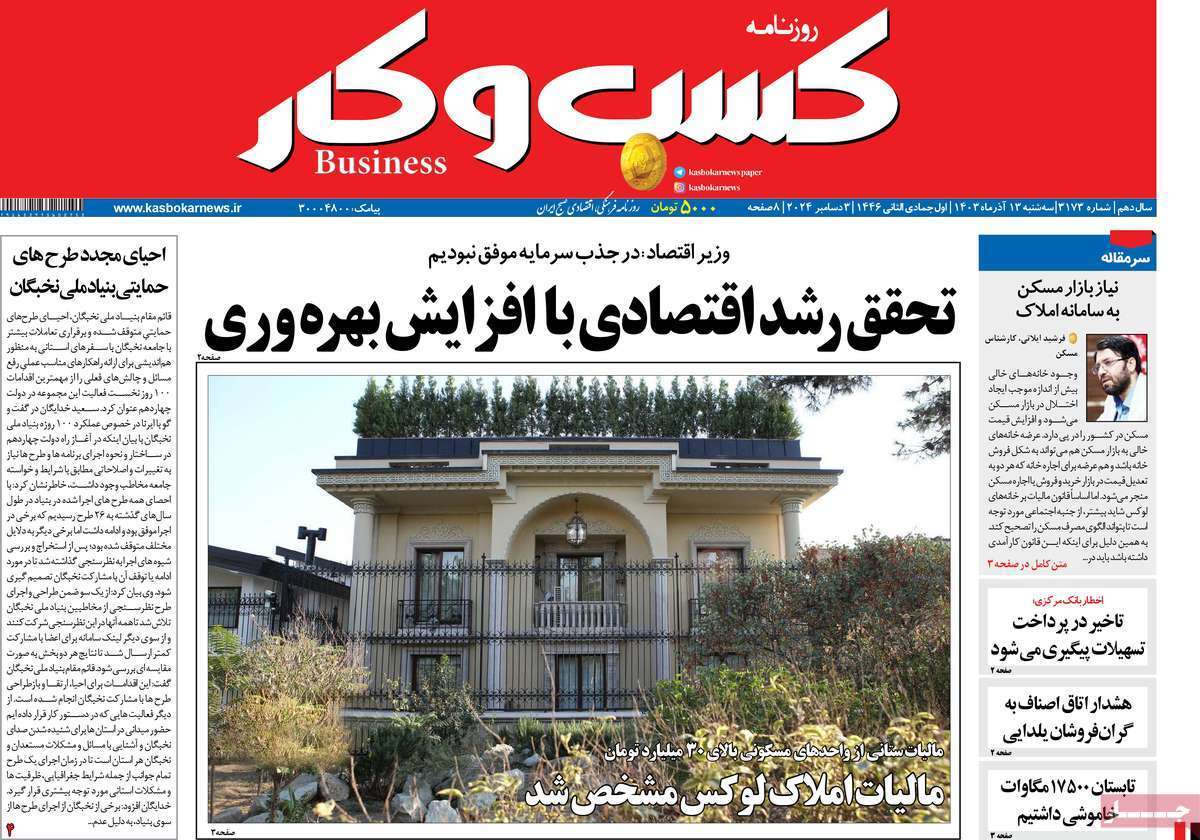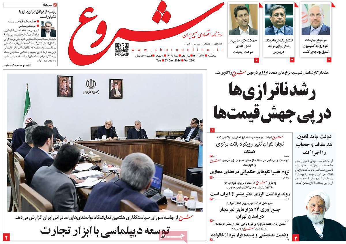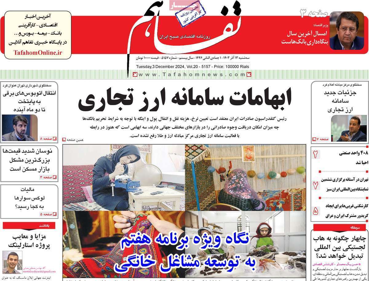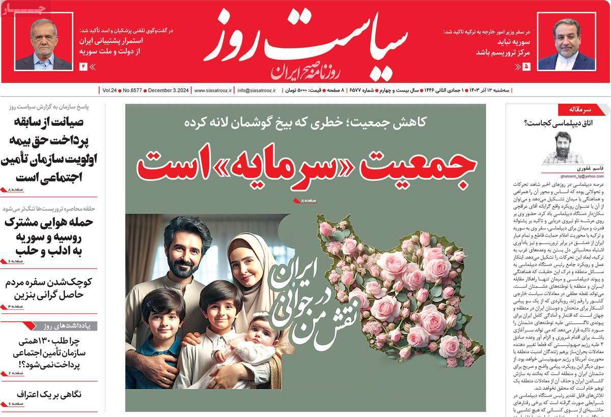 صفحه نخست روزنامه‌های سه‌شنبه ۱۳ آذر ۱۴۰۳