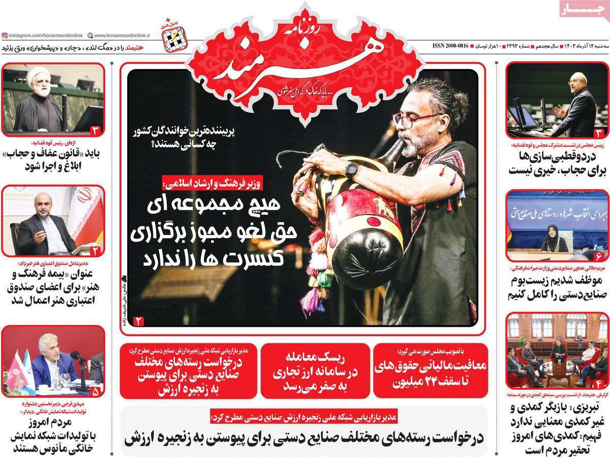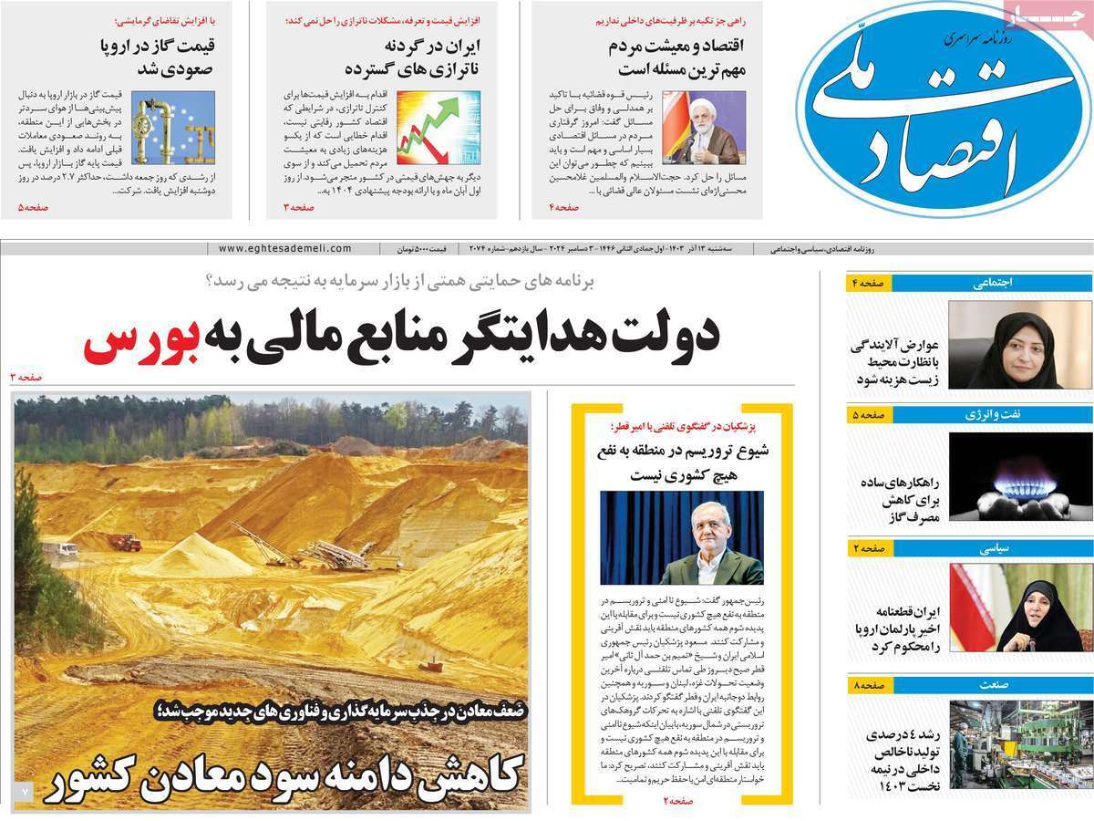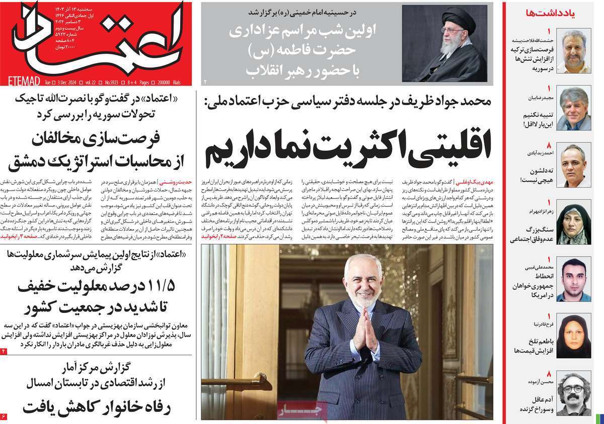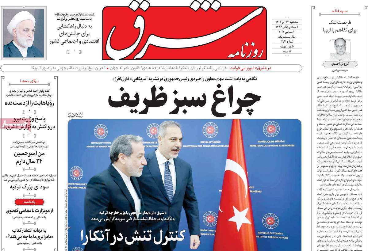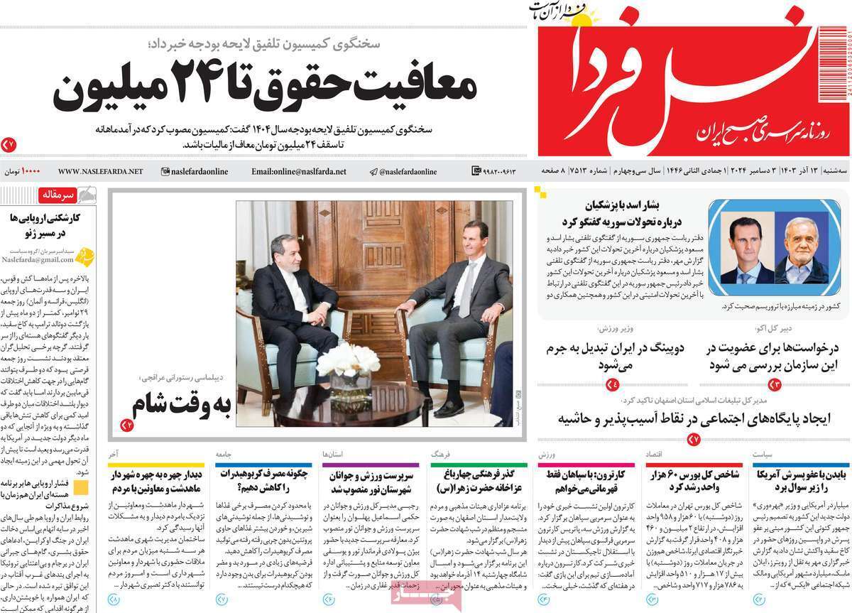 صفحه نخست روزنامه‌های سه‌شنبه ۱۳ آذر ۱۴۰۳