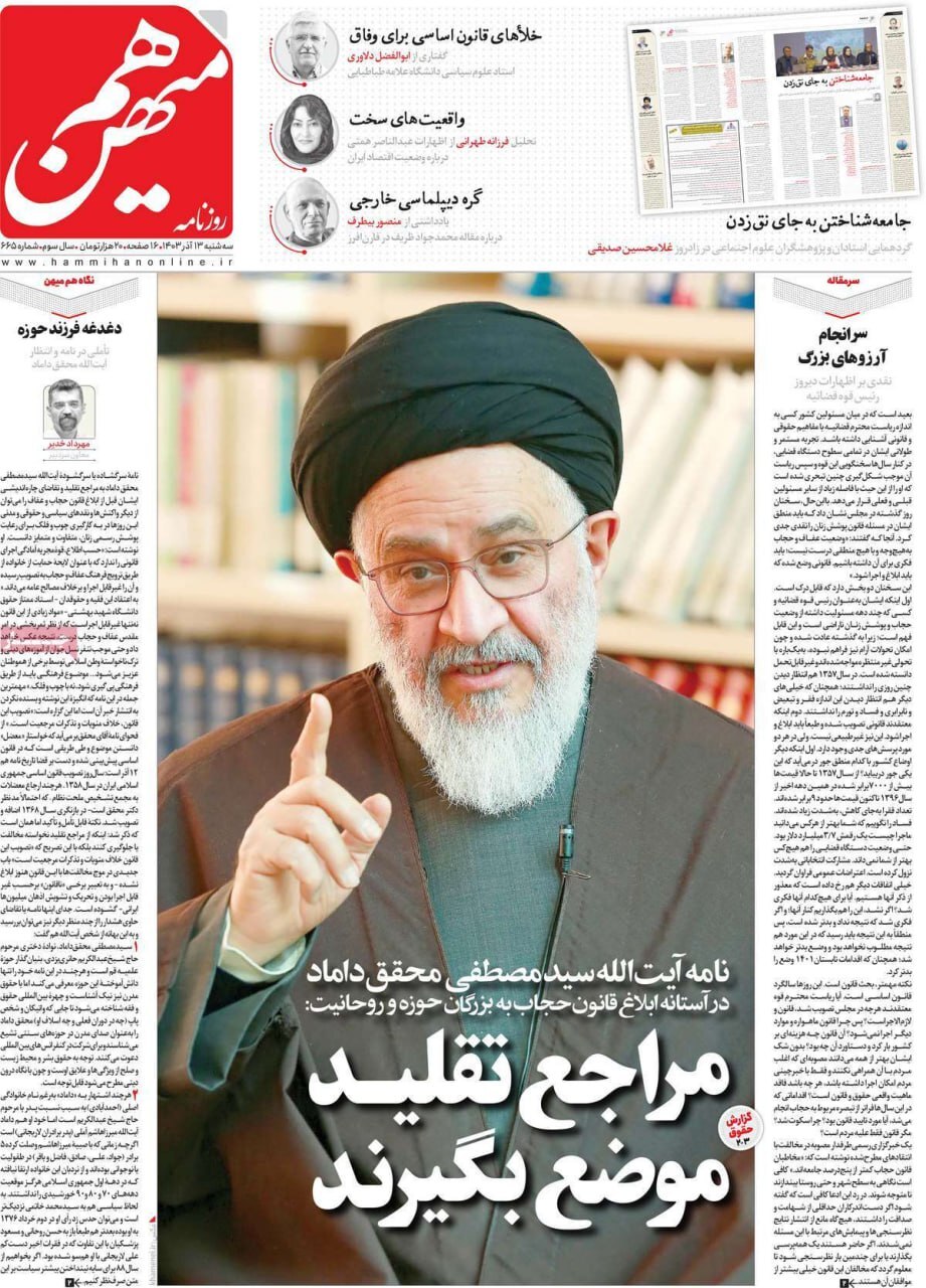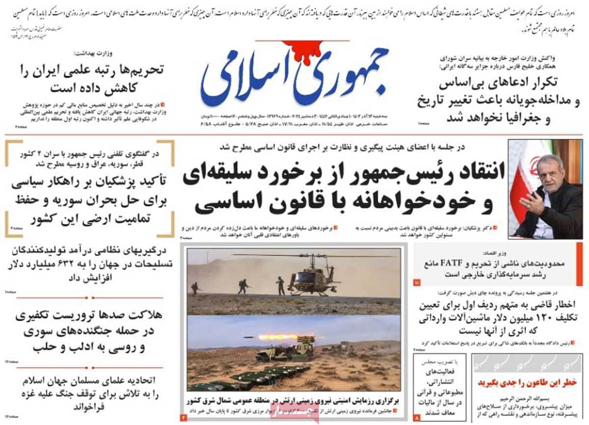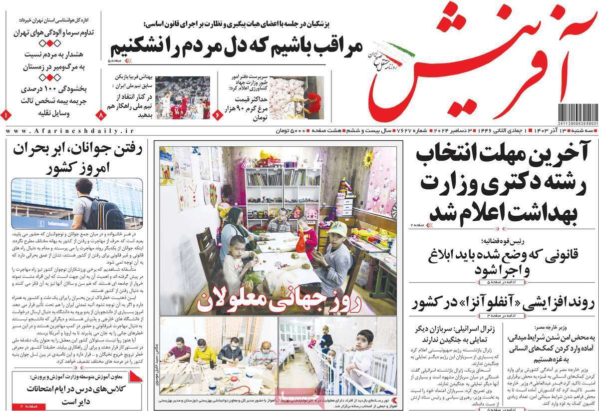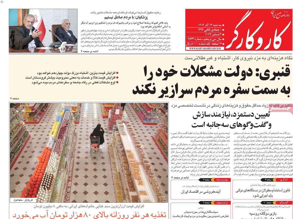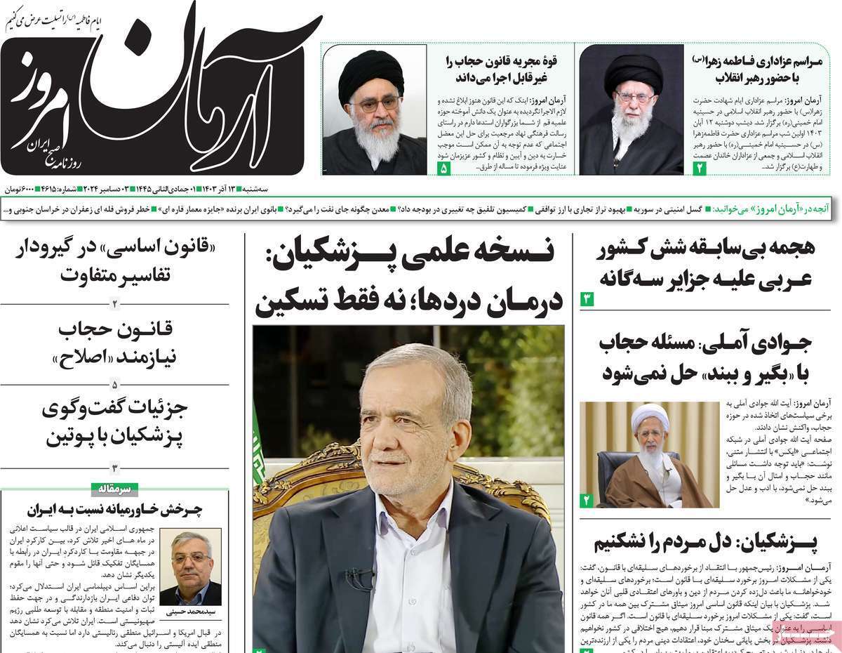 صفحه نخست روزنامه‌های سه‌شنبه ۱۳ آذر ۱۴۰۳