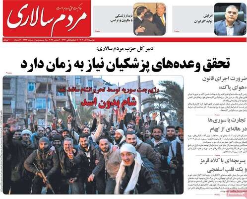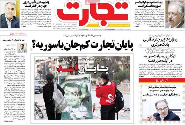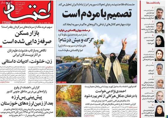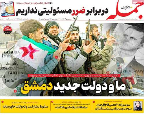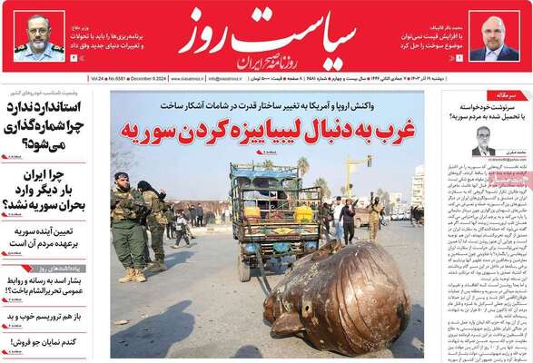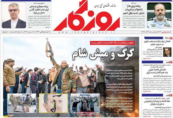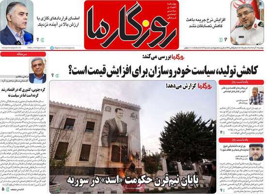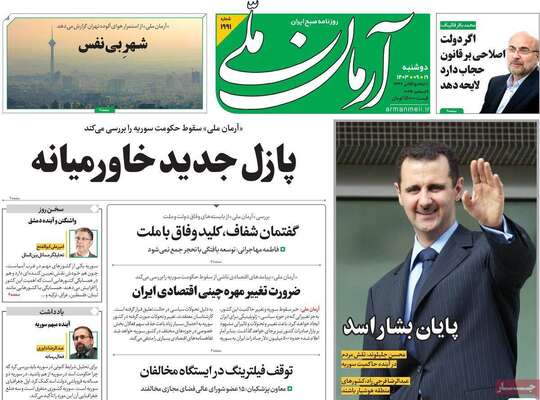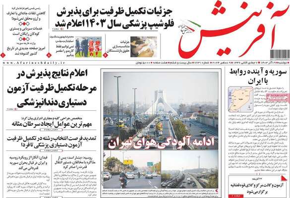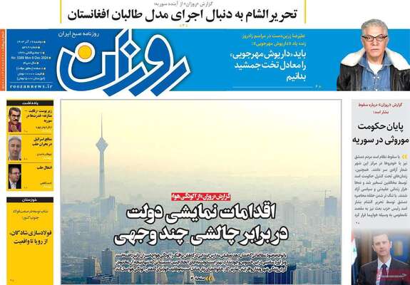 صفحه نخست روزنامههای دوشنبه ۱۹ آذر ۱۴۰۳ را که به اقدامات نمایشی در مقابله با آلودگی هوا، ما و دولت جدید دمشق و مهمترین رویدادهای ورزشی پرداختهاند؛ در ادامه مشاهده میکنید.