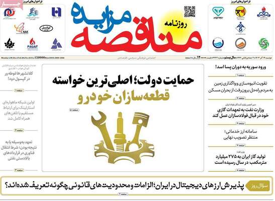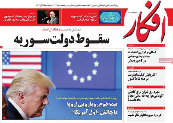 صفحه نخست روزنامههای دوشنبه ۱۹ آذر ۱۴۰۳