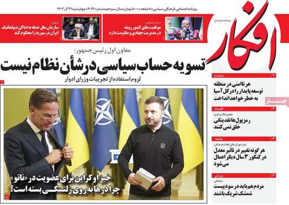 صفحه نخست روزنامههای چهارشنبه ۲۶ آذر ۱۴۰۴