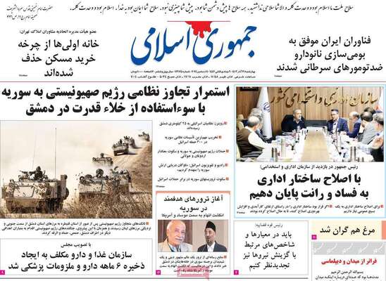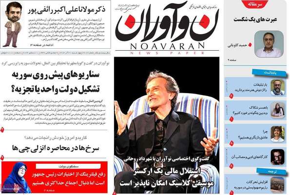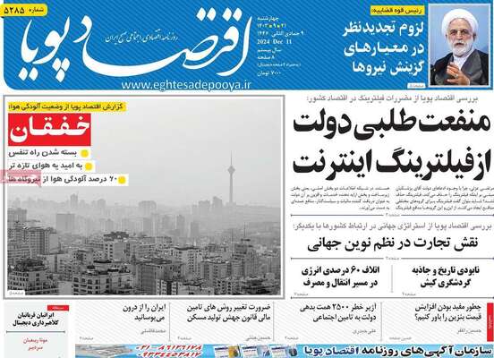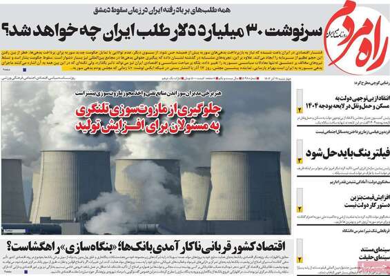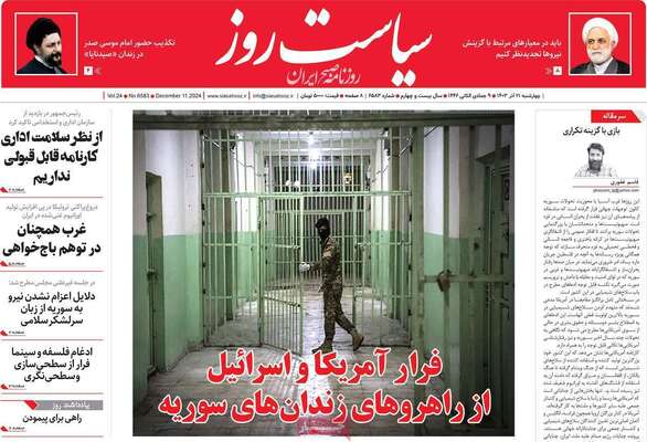 صفحه نخست روزنامههای چهارشنبه ۲۱ آذر ۱۴۰۳ را که به طرح ایمنی جادهها، تهران زیر دود، جوخههای ترور موساد در دمشق و مهمترین رویدادهای ورزشی پرداختهاند؛ در ادامه مشاهده میکنید.