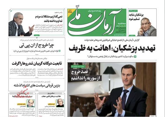 صفحه نخست روزنامههای سهشنبه ۲۷ آذر ۱۴۰۳