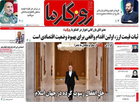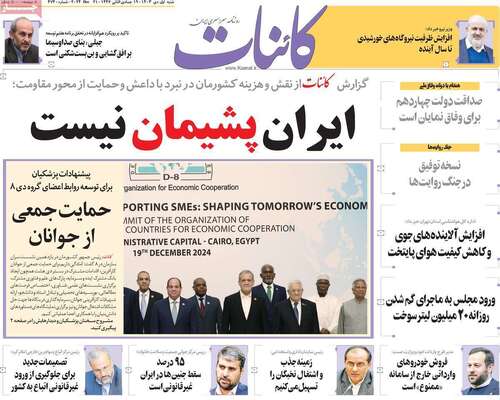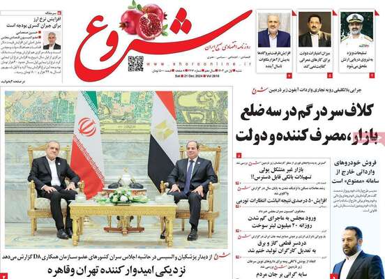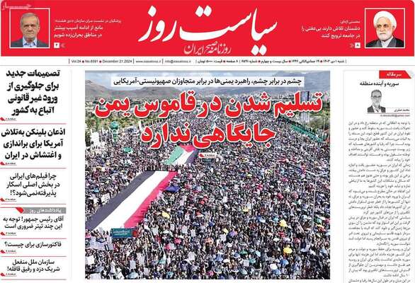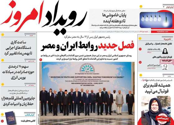 صفحه نخست روزنامههای شنبه ۱ دی ۱۴۰۳ را که به پیام پزشکیان در قاهره، نقشه شوم حاشیهسازان، پشت صحنه تعطیلیها و مهمترین رویدادهای ورزشی پرداختهاند؛ در ادامه مشاهده میکنید.