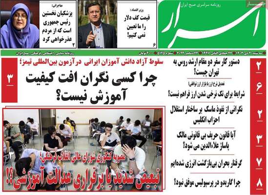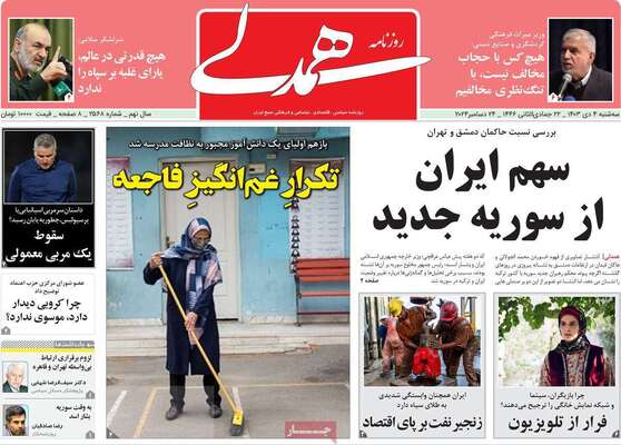 صفحه نخست روزنامههای سهشنبه ۴ دی ۱۴۰۳