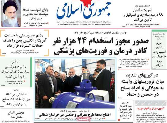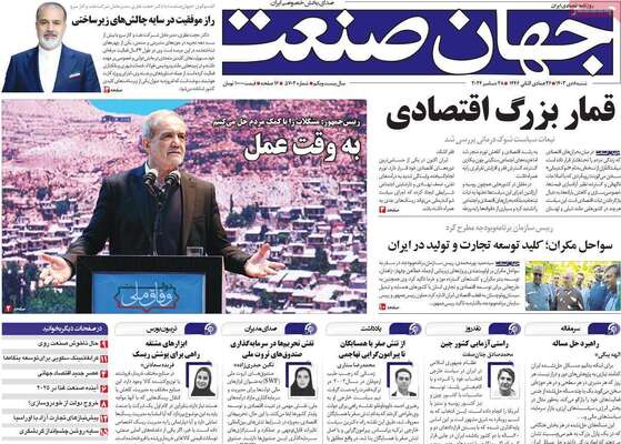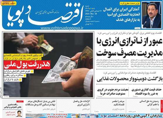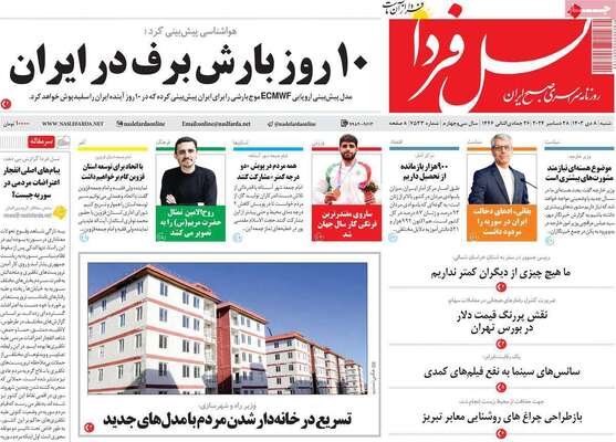 صفحه نخست روزنامههای شنبه ۸ دی ۱۴۰۳ را که به مصرف نادرست و برنامهریزی اشتباه، نیم قرن طلایی پیش روی ایران و چین، خنجر یمنی زیر گلوی صهیونیستها و مهمترین رویدادهای ورزشی پرداختهاند؛ در ادامه مشاهده میکنید.