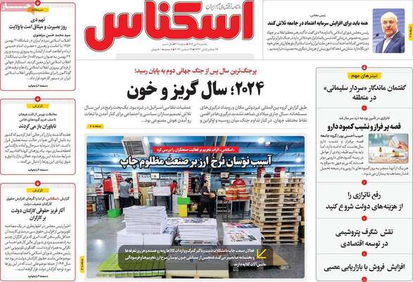 صفحه نخست روزنامههای یکشنبه ۹ دی ۱۴۰۳ را که به تلاش کاسبان فیلترینگ، به آتش کشیدن بیمارستانی در غزه، کریسمس در ایران و مهمترین رویدادهای ورزشی پرداختهاند؛ در ادامه مشاهده میکنید.