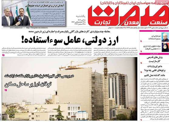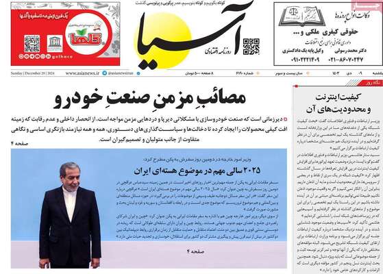 صفحه نخست روزنامههای یکشنبه ۹ دی ۱۴۰۳