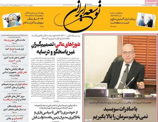 صفحه نخست روزنامههای سهشنبه ۱۱ دی ۱۴۰۳ را که به سیگنالهای مذاکره، آینده آب در ایران، وابستگی جولانی به اسرائیل و مهمترین رویدادهای ورزشی پرداختهاند؛ در ادامه مشاهده میکنید.