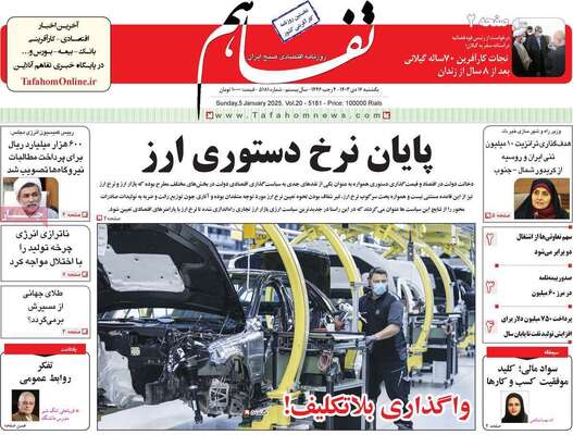 صفحه نخست روزنامههای یکشنبه ۱۶ دی ۱۴۰۳