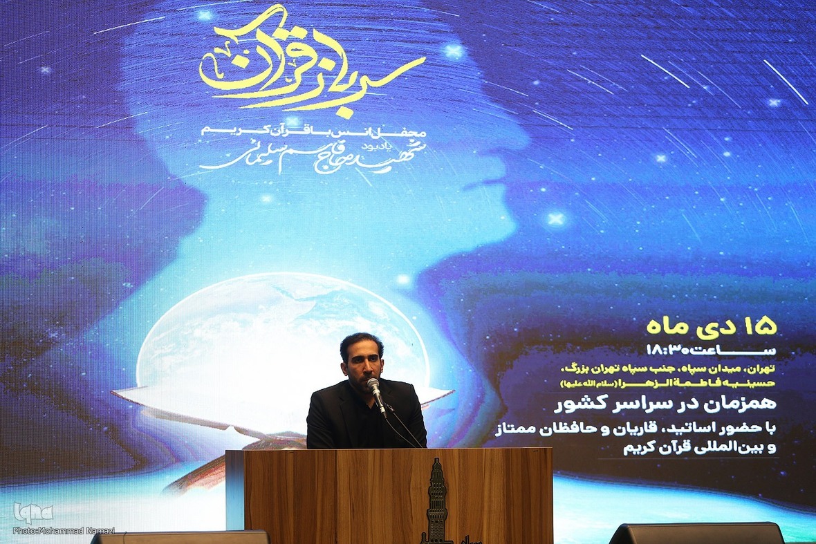 این مراسم در قالب محفل انس با قرآن کریم و با عنوان «سرباز قرآن» روز شنبه ۱۵ دیماه در سراسر کشور با حضور قاریان و حافظان و فعالان قرآنی کشورمان به مرحله اجرا درآمد.