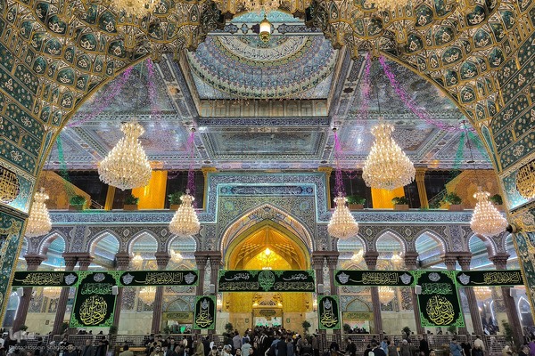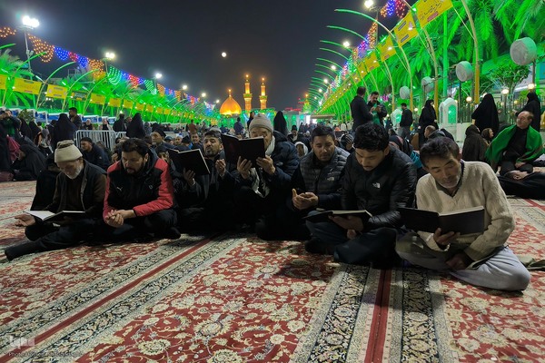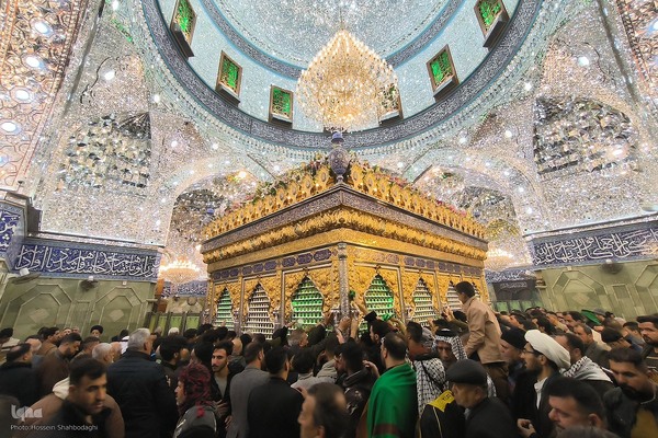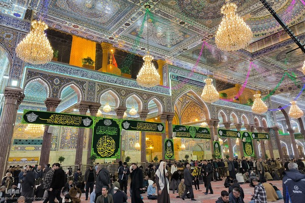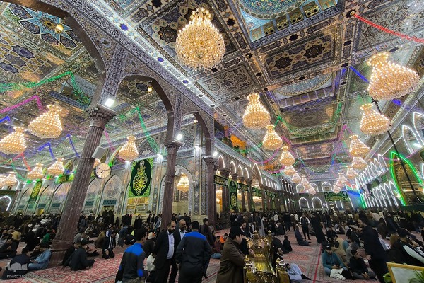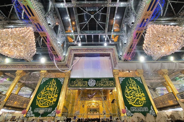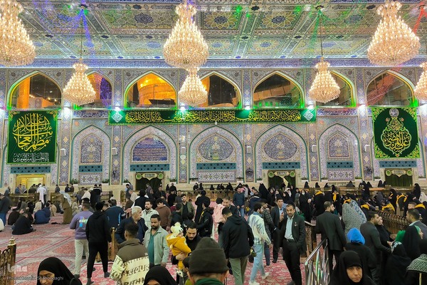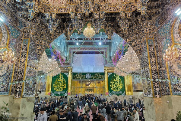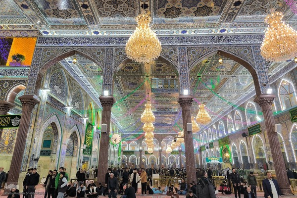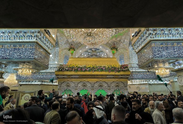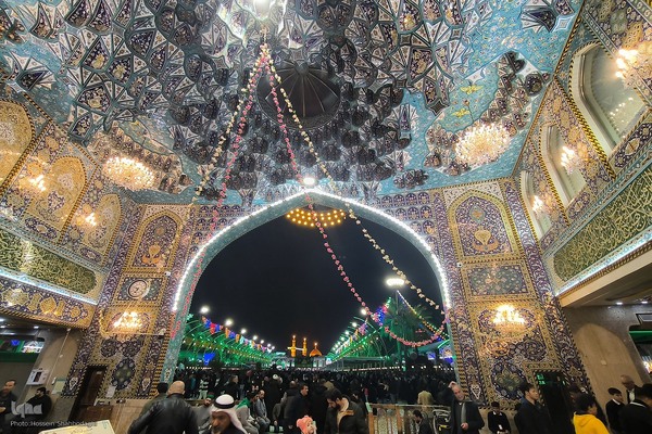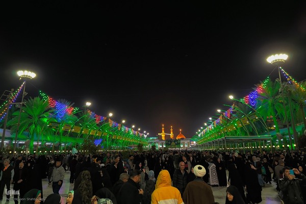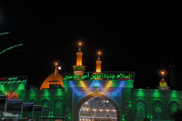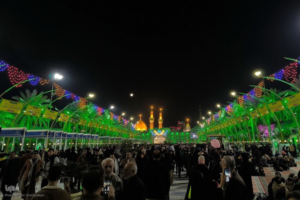 صحن و سرای بارگاه نورانی امام حسین(ع) و حضرت ابوالفضل العباس(ع) در شام میلاد پدر بزرگوارشان سراسر نور و سرور و شادی است.