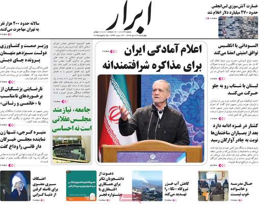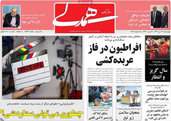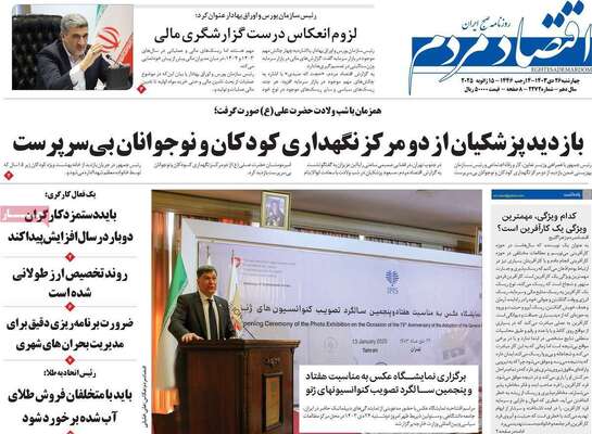 صفحه نخست روزنامههای چهارشنبه ۲۶ دی ۱۴۰۳