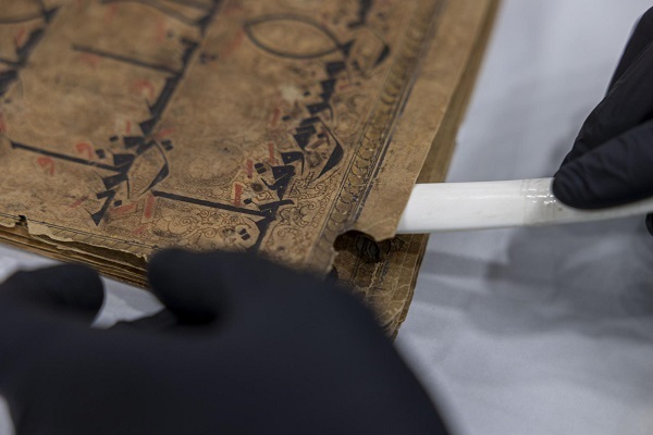 عبدالزهره تصریح کرد: مرحله اول مرمت شامل بررسی جامع نسخه خطی، کاغذها، رنگ، تزئینات و مرکبهای به کار رفته در نگارش آن، عکاسی از آسیبهای وارده و شمارهگذاری صفحات آن طبق ترتیب قرآن کریم است که قبل از شروع هرگونه مرمت آغاز میشود.