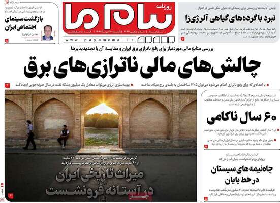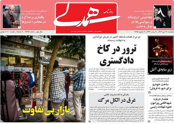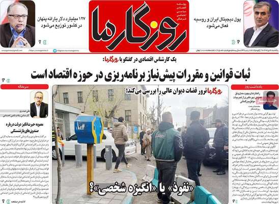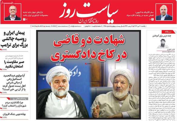 صفحه نخست روزنامههای یکشنبه ۳۰ دی ۱۴۰۳ را که به سناریوهای ترور در کاخ دادگستری، باید باور کنیم که میتوانیم، ضربه اطلاعات سپاه به مراکز قاچاق سوخت و مهمترین رویدادهای ورزشی پرداختهاند؛ در ادامه مشاهده میکنید.