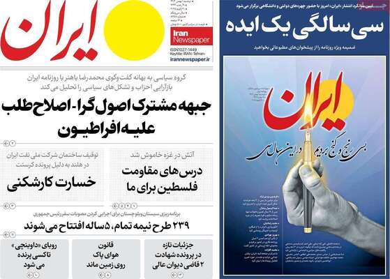صفحه اول جراید کشور