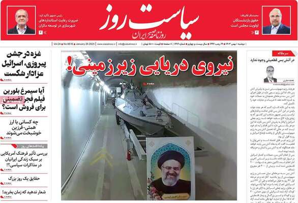 صفحه نخست روزنامههای دوشنبه ۱ بهمن ۱۴۰۳ را که به نیروی دریایی زیرزمینی، پیروزی از دل ویرانهها، سناریوهای ترور و مهمترین رویدادهای ورزشی پرداختهاند؛ در ادامه مشاهده میکنید.