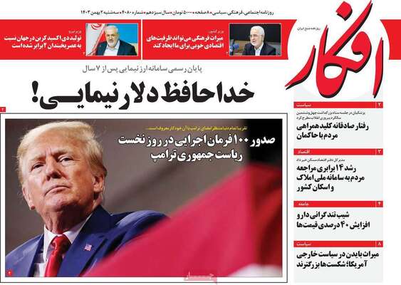 صفحه نخست روزنامههای سهشنبه ۲ بهمن ۱۴۰۳ را که به خداحافظی با دلار نیمایی، دوباره ترامپ، حقابه ایران از هیرمند تا هریرود و مهمترین رویدادهای ورزشی پرداختهاند؛ در ادامه مشاهده میکنید.