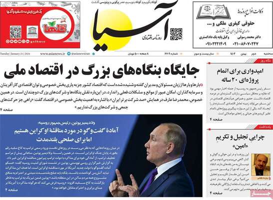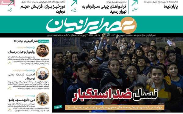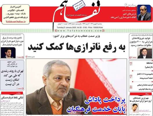 صفحه نخست روزنامههای سهشنبه ۲ بهمن ۱۴۰۳