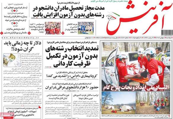 صفحه اول جراید کشور