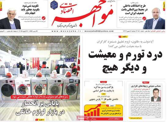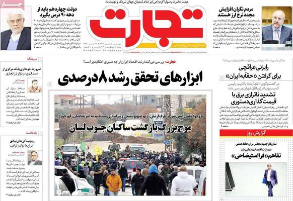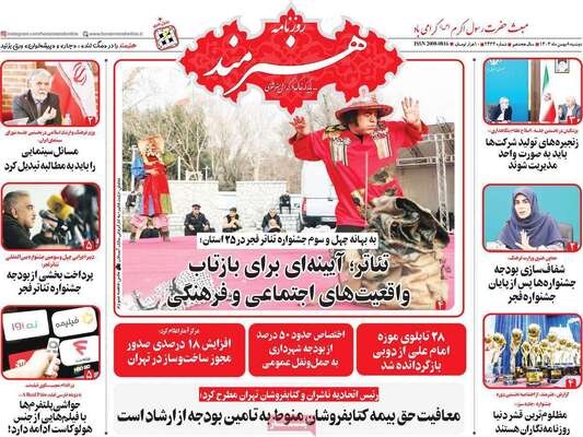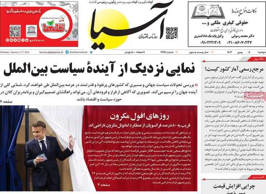 صفحه نخست روزنامههای دوشنبه ۸ بهمن ۱۴۰۳ را که به سرفصل آیههای زندگی، لبخند تهرانیها، چانهزنی درباره آب و اتباع و مهمترین رویدادهای ورزشی پرداختهاند؛ در ادامه مشاهده میکنید.