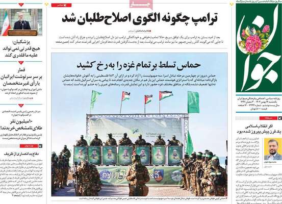 صفحه نخست روزنامههای یکشنبه ۱۴ بهمن ۱۴۰۳ را که به تجدید عهد، قدم به قدم هماهنگ با رهبر، نقشه جدید ترامپ و مهمترین رویدادهای ورزشی پرداختهاند؛ در ادامه مشاهده میکنید.