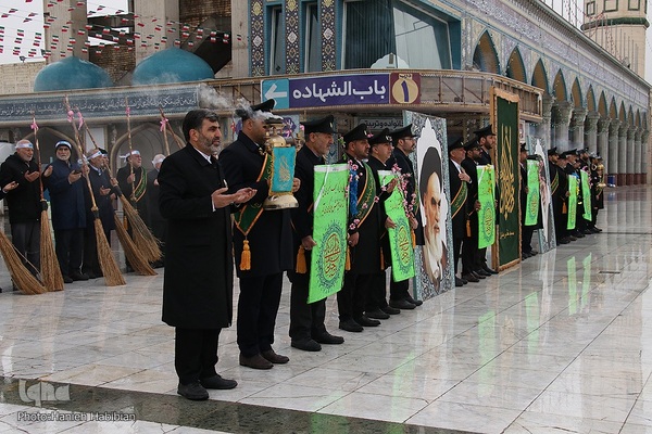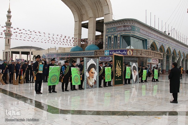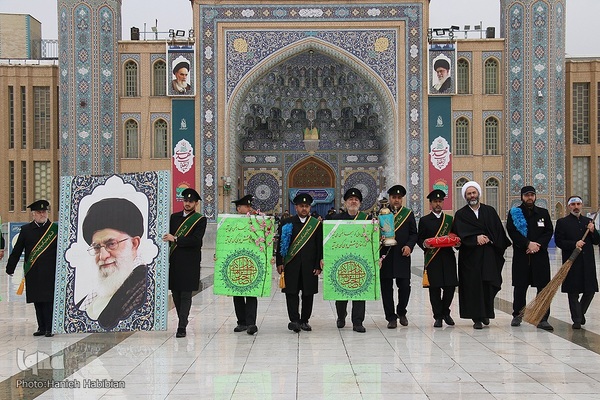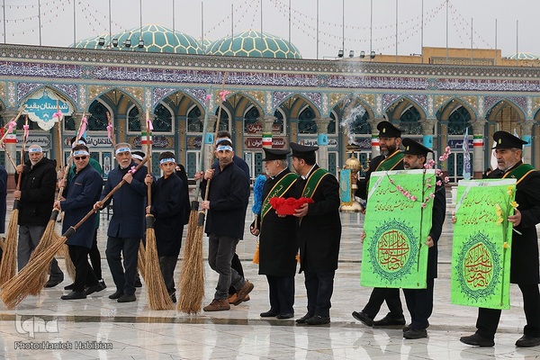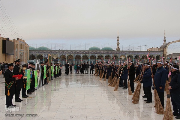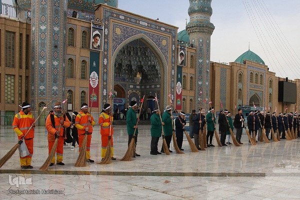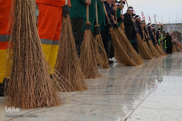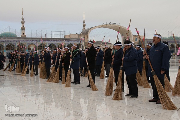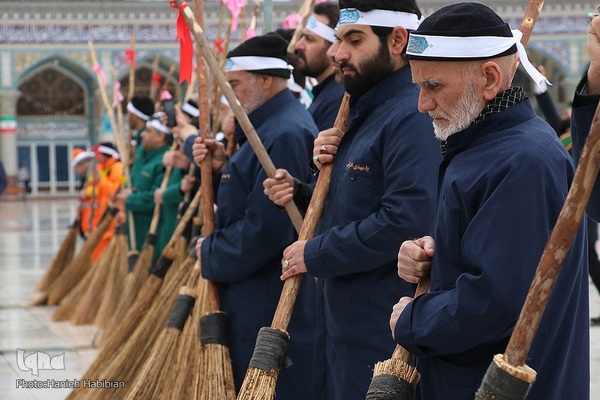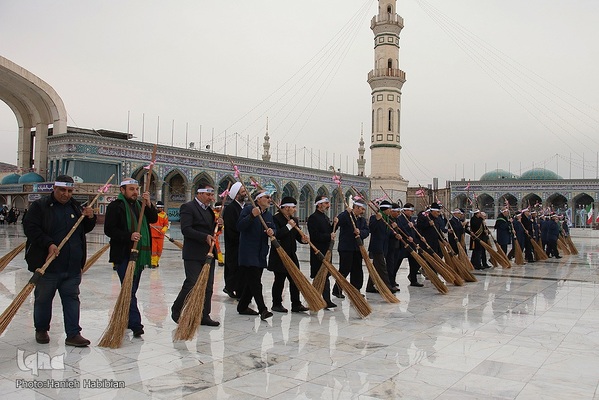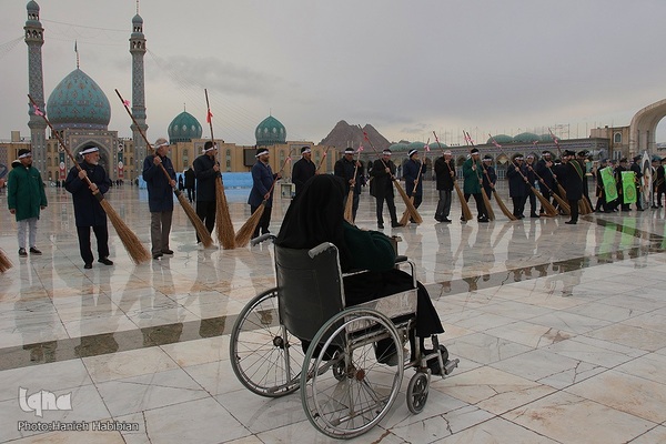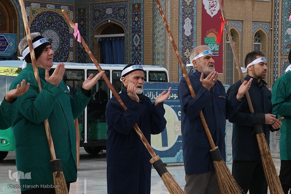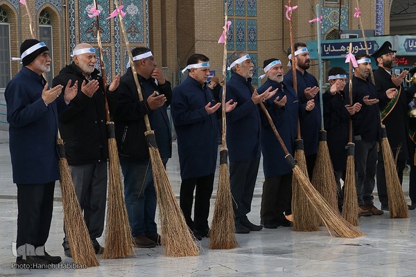 آئین جاروکشی صحن جامع امام مهدی(عج) در آستانه نیمه شعبان