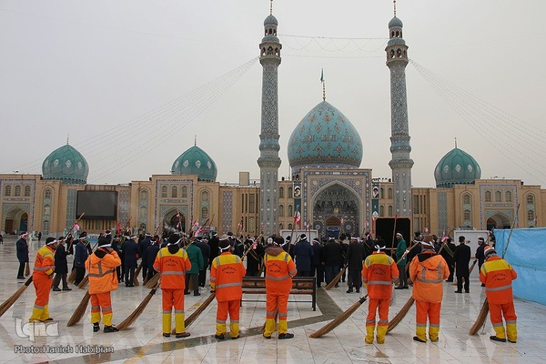 در آستانه جشن بزرگ نیمه شعبان، جمعی از خادمین آستان مقدس مسجد جمکران به همراه مسئولان هیئات مذهبی استان قم برای تجدیدعهد با امام عصر (عج) آئین جارو کشی این مسجد مقدس را برگزار کردند.