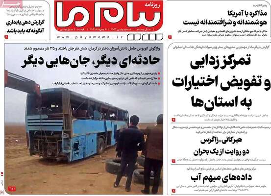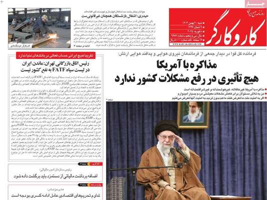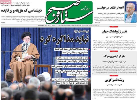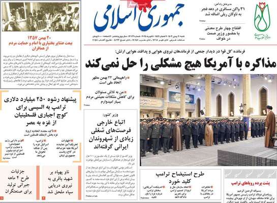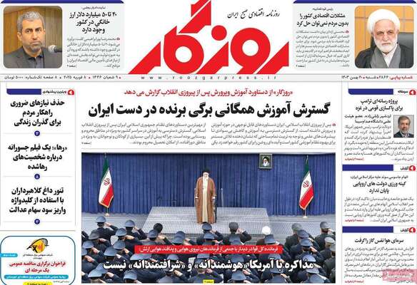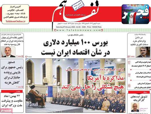 صفحه نخست روزنامه‌های شنبه ۲۰ بهمن ۱۴۰۳ را که به پاسخ صریح و قاطع رهبر معظم انقلاب درباره مذاکره با آمریکا، پاسخ پزشکیان به ادعای ترامپ، حادثه‌ای دیگر در جاده‌ها و مهمترین رویدادهای ورزشی پرداخته‌اند؛ در ادامه مشاهده می‌کنید.