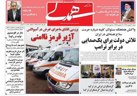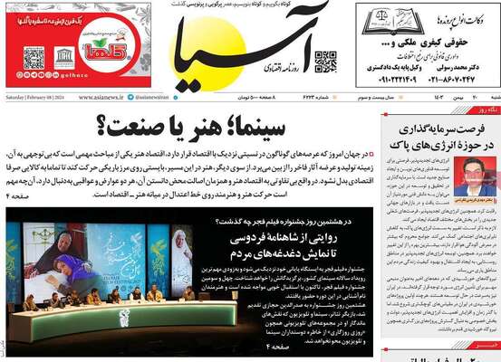صفحه نخست روزنامه‌های شنبه ۲۰ بهمن ۱۴۰۳