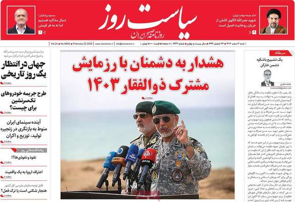 صفحه نخست روزنامههای شنبه ۴ اسفند ۱۴۰۳