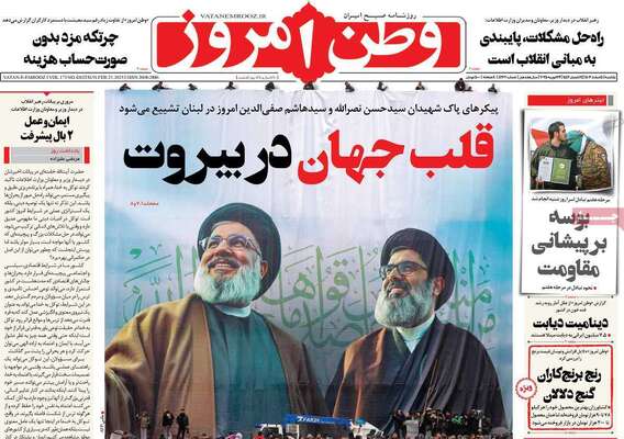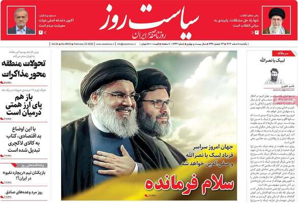 صفحه نخست روزنامههای یکشنبه ۵ اسفند ۱۴۰۳ را که به روز وداع با نصر خدا، بوسهای که جهان را مبهوت کرد، پایبندی به مبانی انقلاب و مهمترین رویدادهای ورزشی پرداختهاند؛ در ادامه مشاهده میکنید.