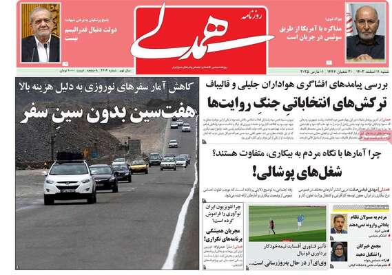 صفحه نخست روزنامههای شنبه ۱۱ اسفند ۱۴۰۳