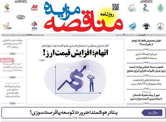 صفحه نخست روزنامههای چهارشنبه ۲۶ آذر ۱۴۰۴