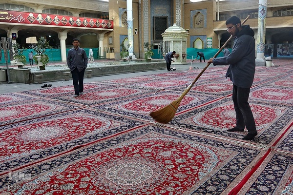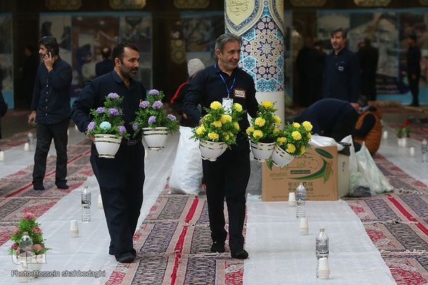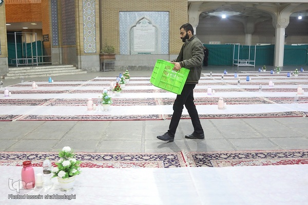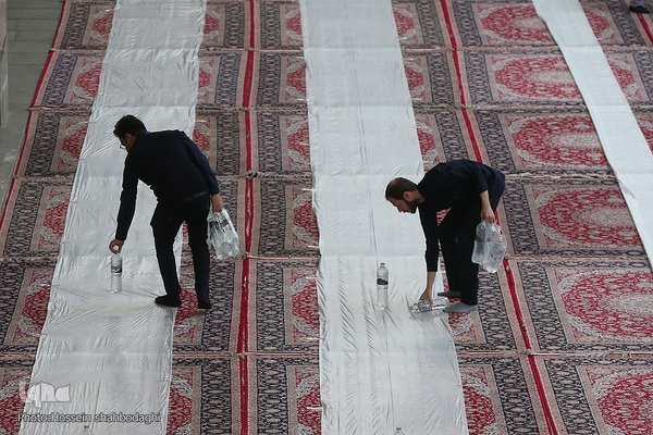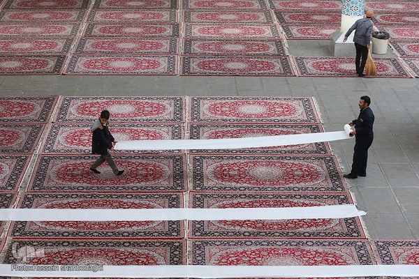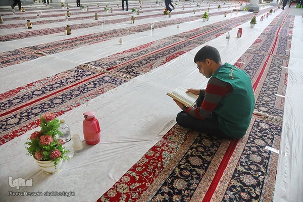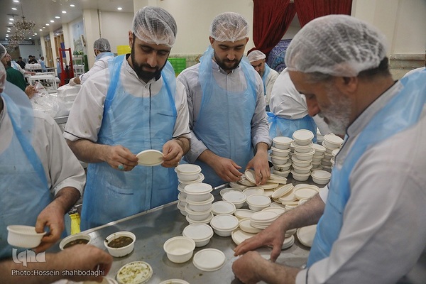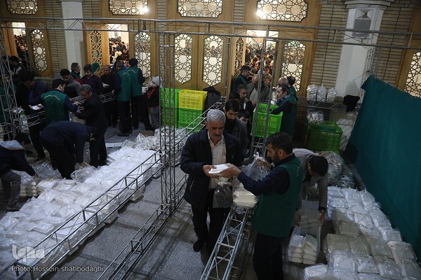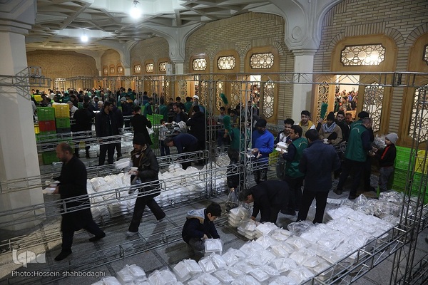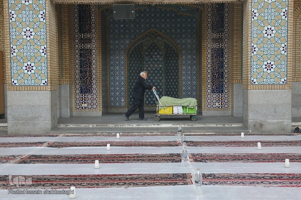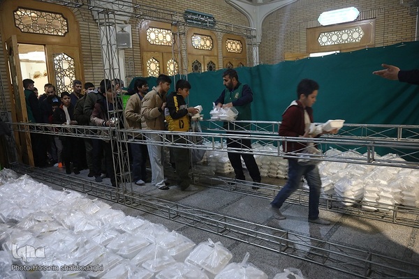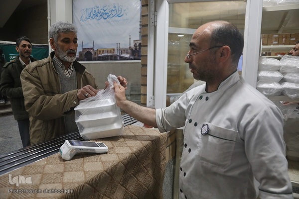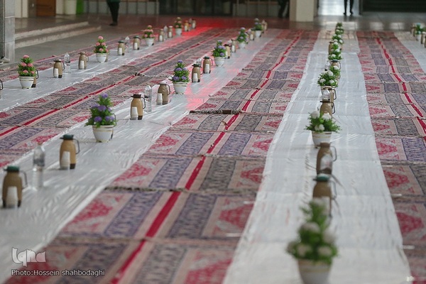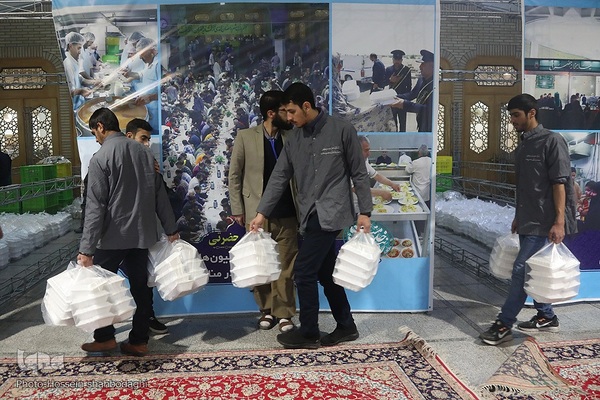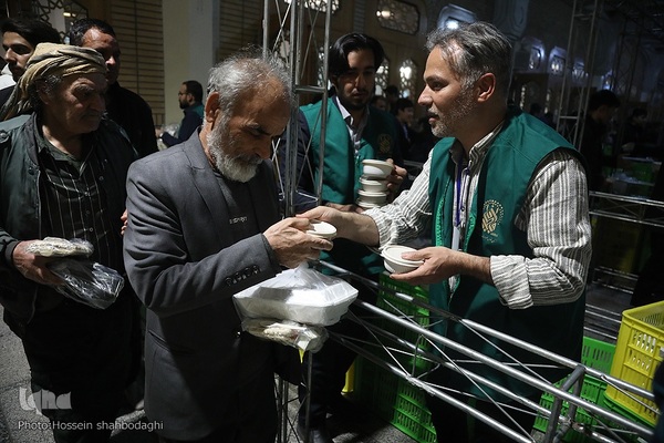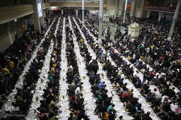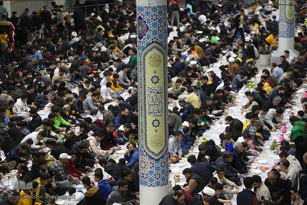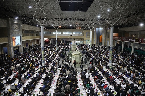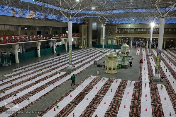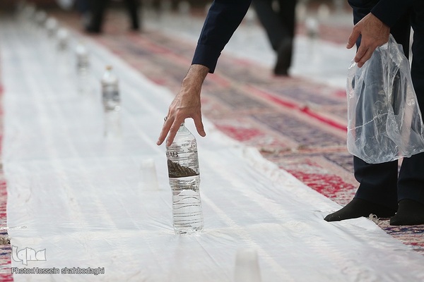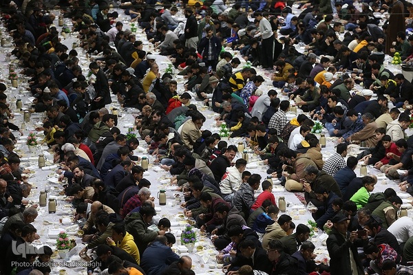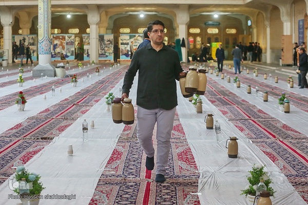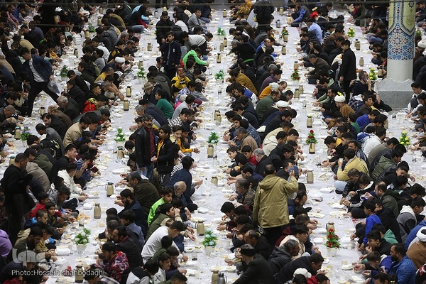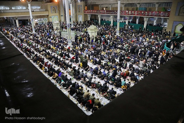 مجاوران و زائران حرم مطهر بانوی کرامت همانند سالهای گذشته طی ماه رمضان هر شب در صحن حضرت صاحبالزمان(عج) مهمان سفره افطار حرم مطهر هستند.