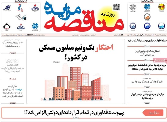 صفحه نخست روزنامه‌های چهارشنبه ۲۲ اسفند ۱۴۰۳
