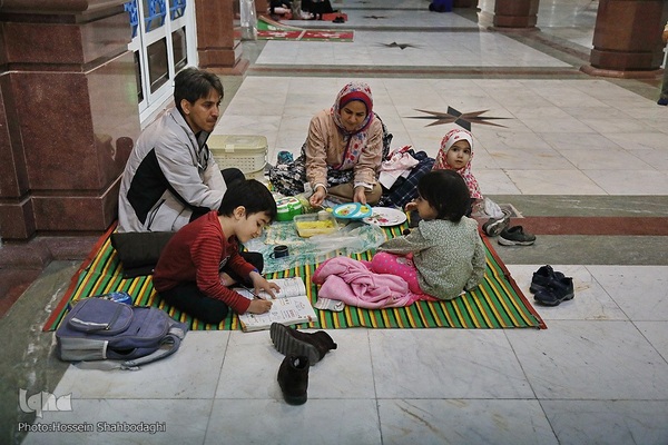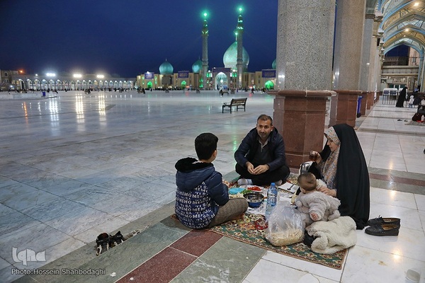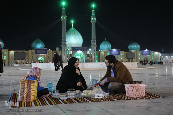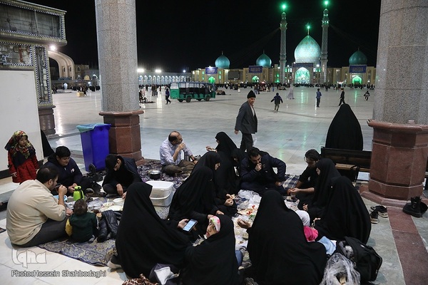اقشار مختلف مردم در شبهای ماه مبارک رمضان روزه خود را در جایجای مسجد مقدس جمکران افطار میکنند.