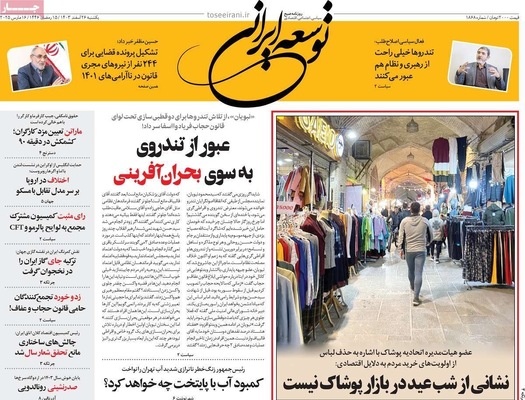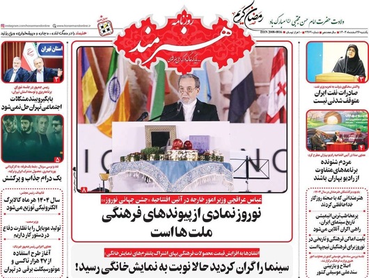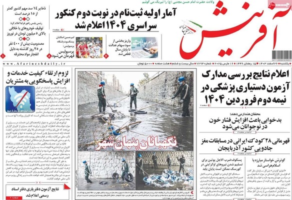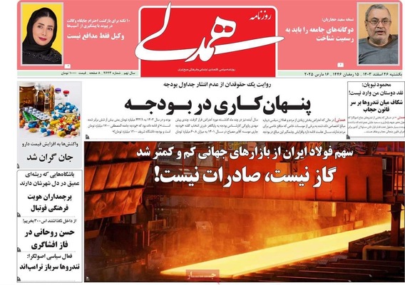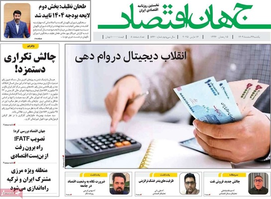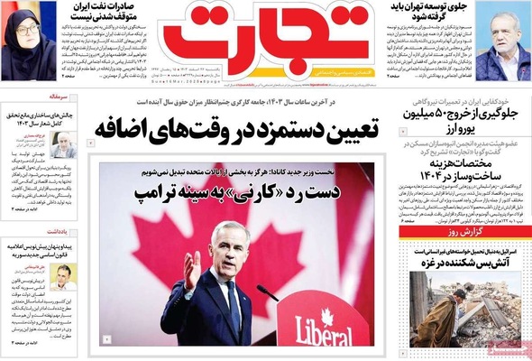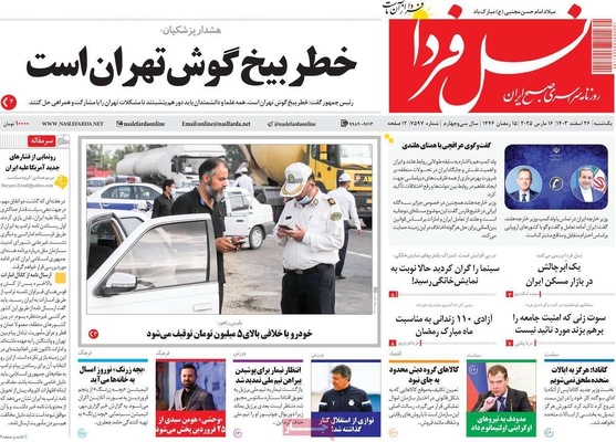 صفحه نخست روزنامههای یکشنبه ۲۶ اسفند ۱۴۰۳