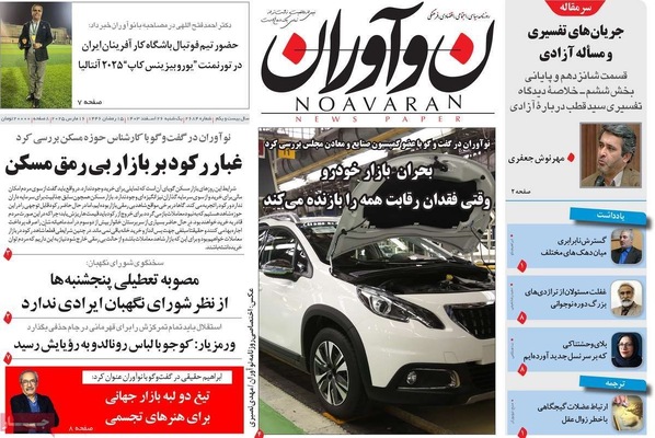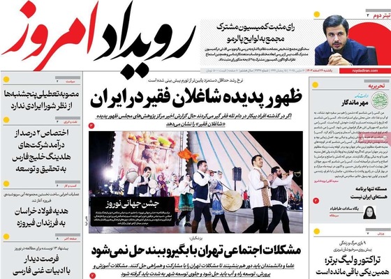 صفحه نخست روزنامههای یکشنبه ۲۶ اسفند ۱۴۰۳ را که به خوب و بد بازار شب عید، شعرِ مبارک، نمای زندگی یک دانشمند و مهمترین رویدادهای ورزشی پرداختهاند؛ در ادامه مشاهده میکنید.