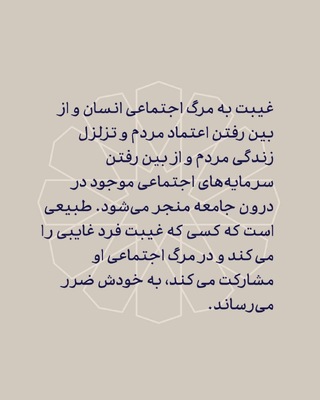 غیبت به مرگ اجتماعی انسان و از بین رفتن اعتماد مردم و تزلزل زندگی مردم و از بین رفتن سرمایههای اجتماعی موجود در درون جامعه منجر میشود. طبیعی است که کسی که غیبت فرد غایبی را میکند و در مرگ اجتماعی او مشارکت میکند، به خودش ضرر میرساند. از همینروست که قرآن کریم چنین تعبیر میکند:«... أَ یُحِبُّ أَحَدُکُم أَن یَأکُلَ لَحمَ أَخِیهِ ...»؛ گویی که برادر خود را میکشد. [امام موسی صدر؛ برگرفته از کتاب حدیث سحرگاهان]